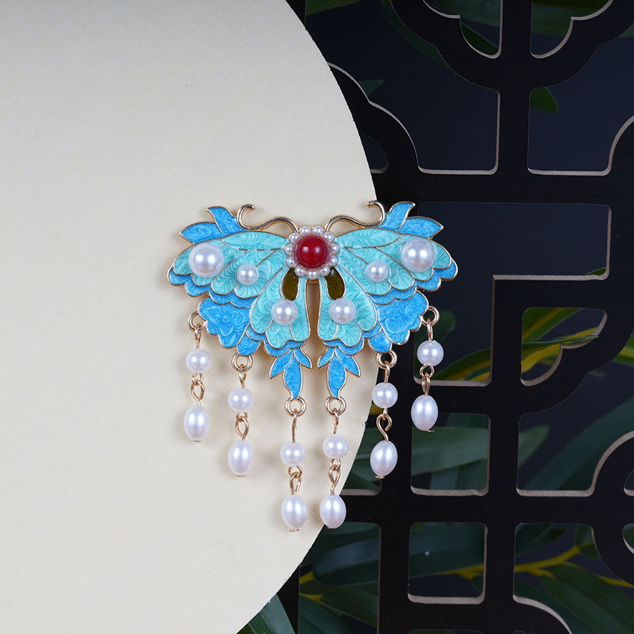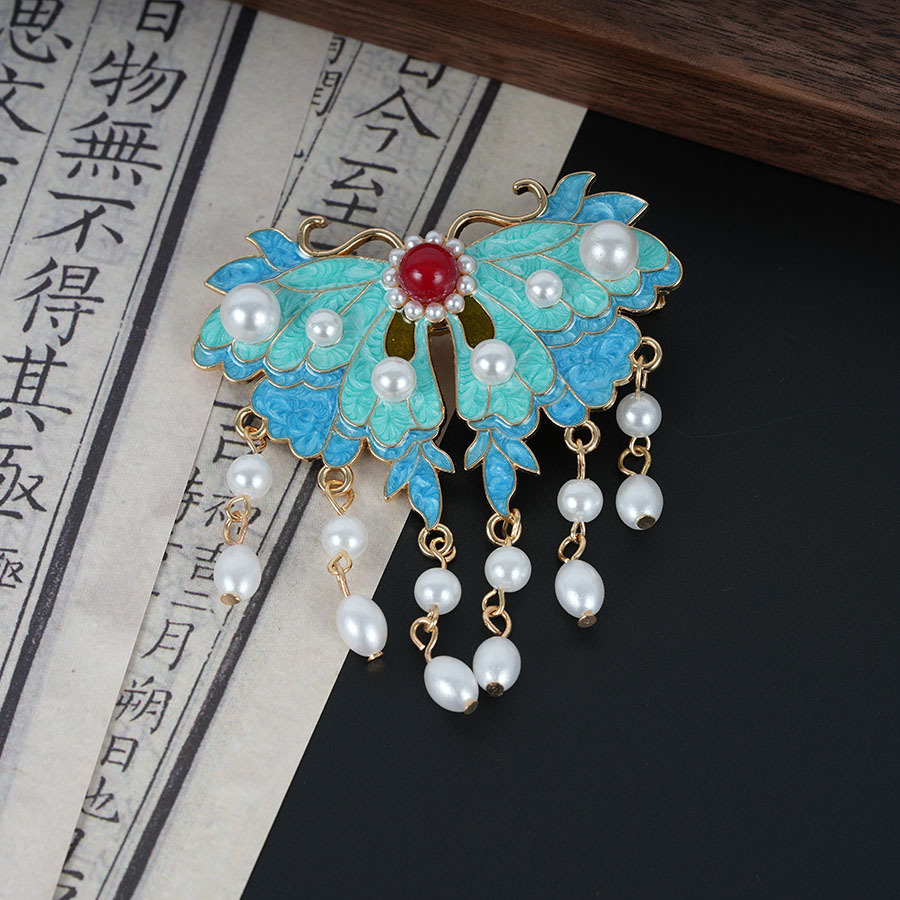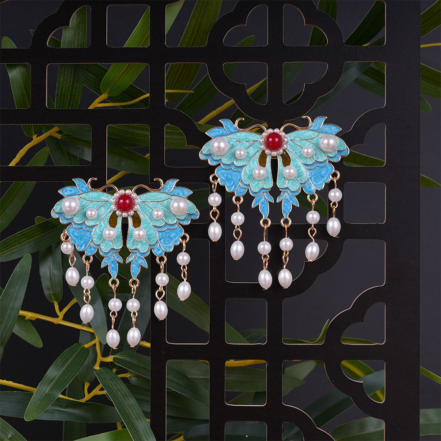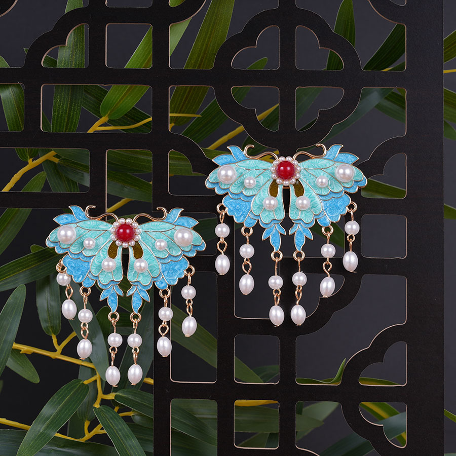 고전적인 중국 스타일의 고급 절묘한 나비 앞머리 클립 치파오 머리 장식 중국 스타일 Hanfu 헤어 액세서리 사이드 클립 액세서리스토어 가기