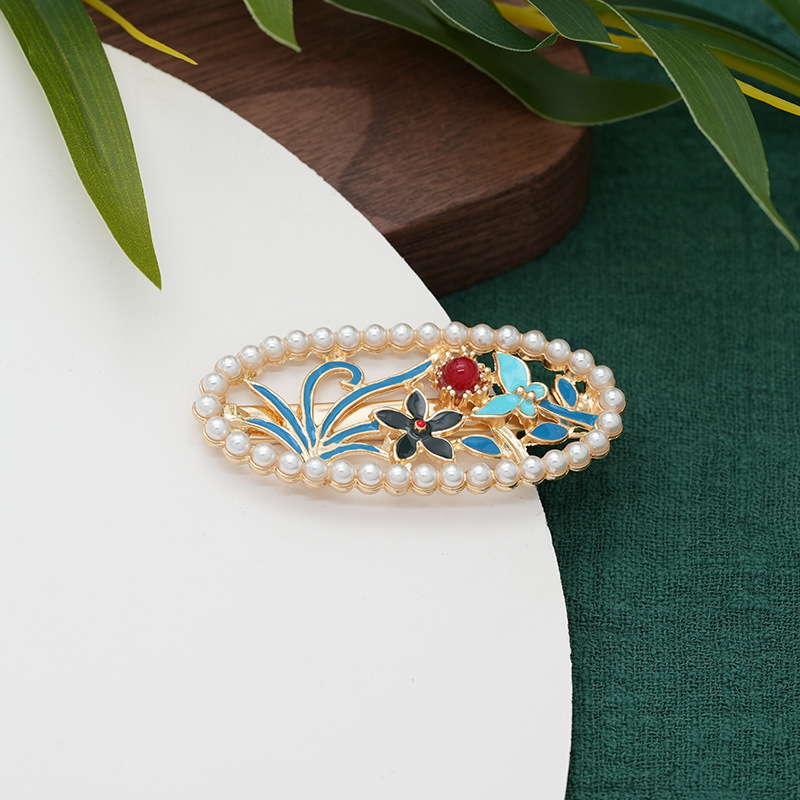 • 타원형 기름이 뚝뚝 떨어지는 진주 난초 머리핀