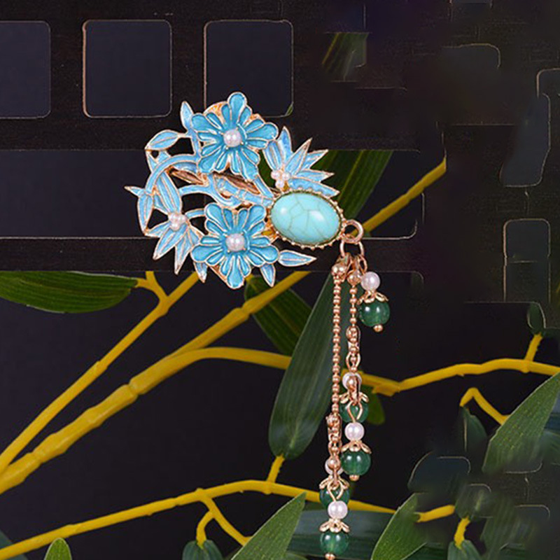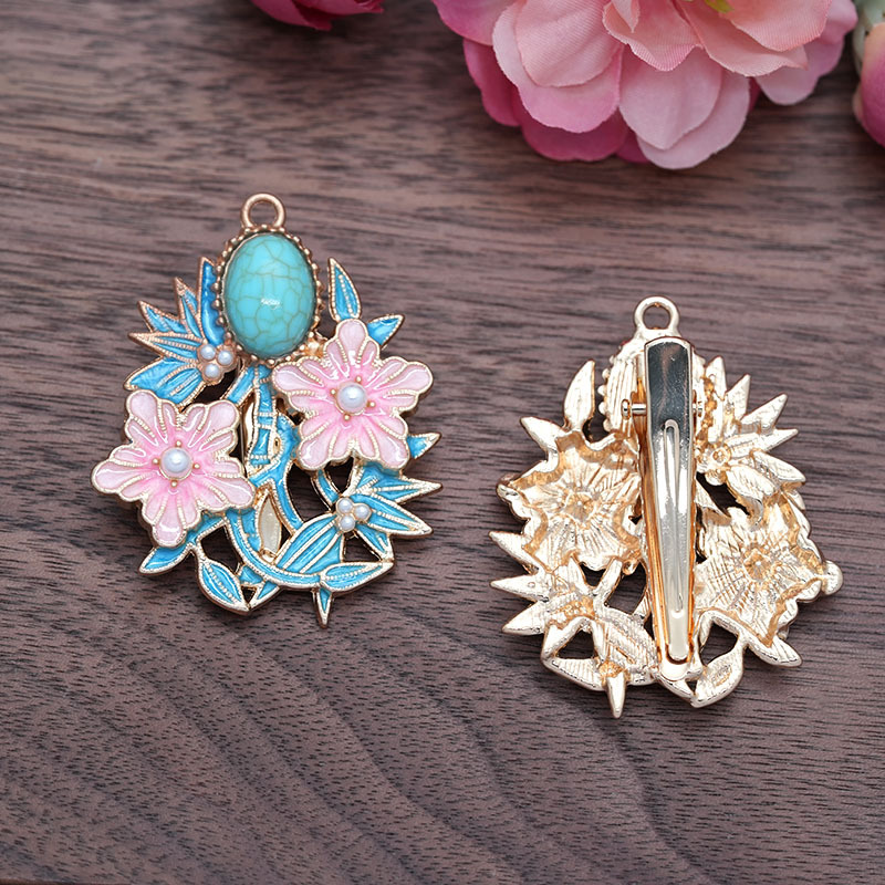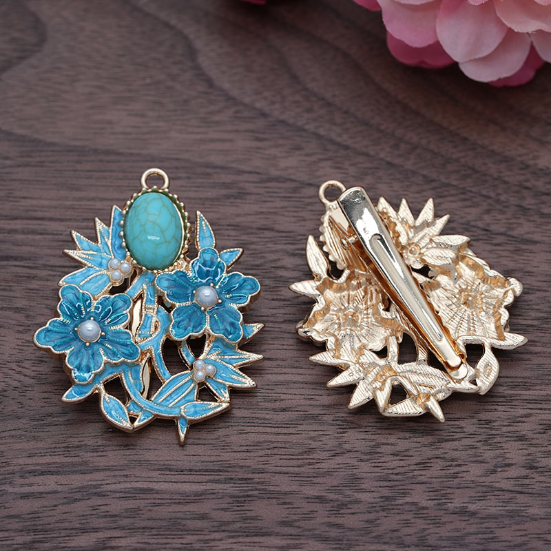 • 칠보 이중 꽃 모조 청록색 가장자리 클립