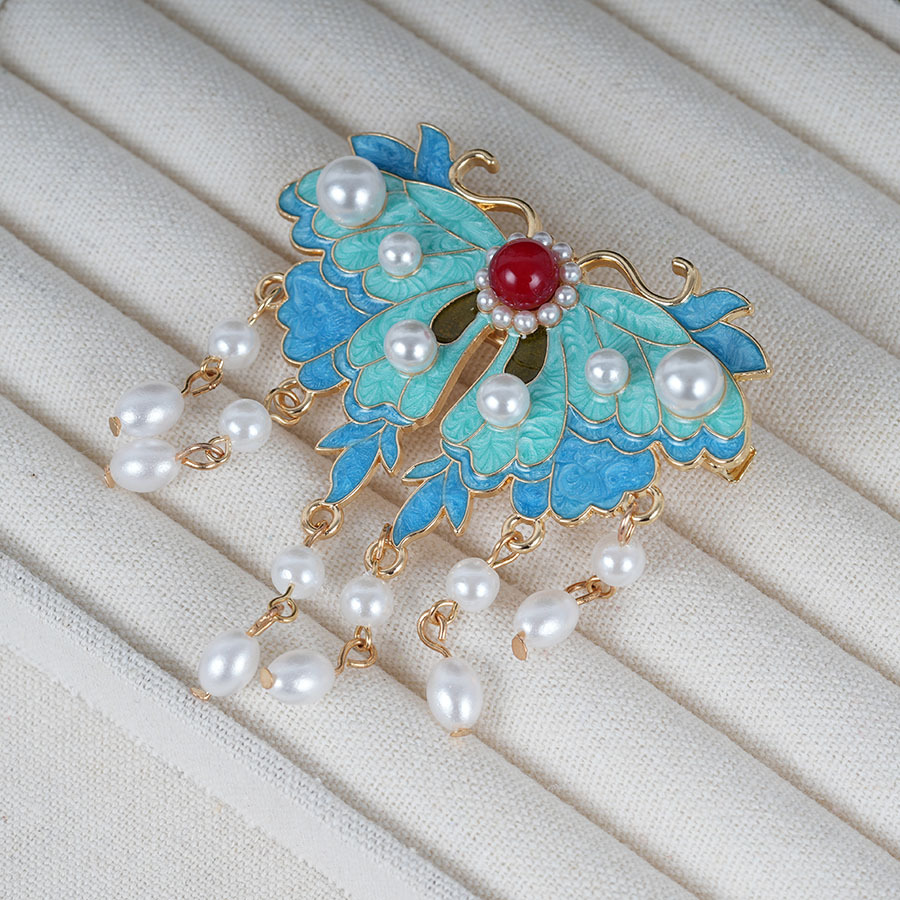 • 진주 여러 개의 술이 달린 호랑나비 머리핀