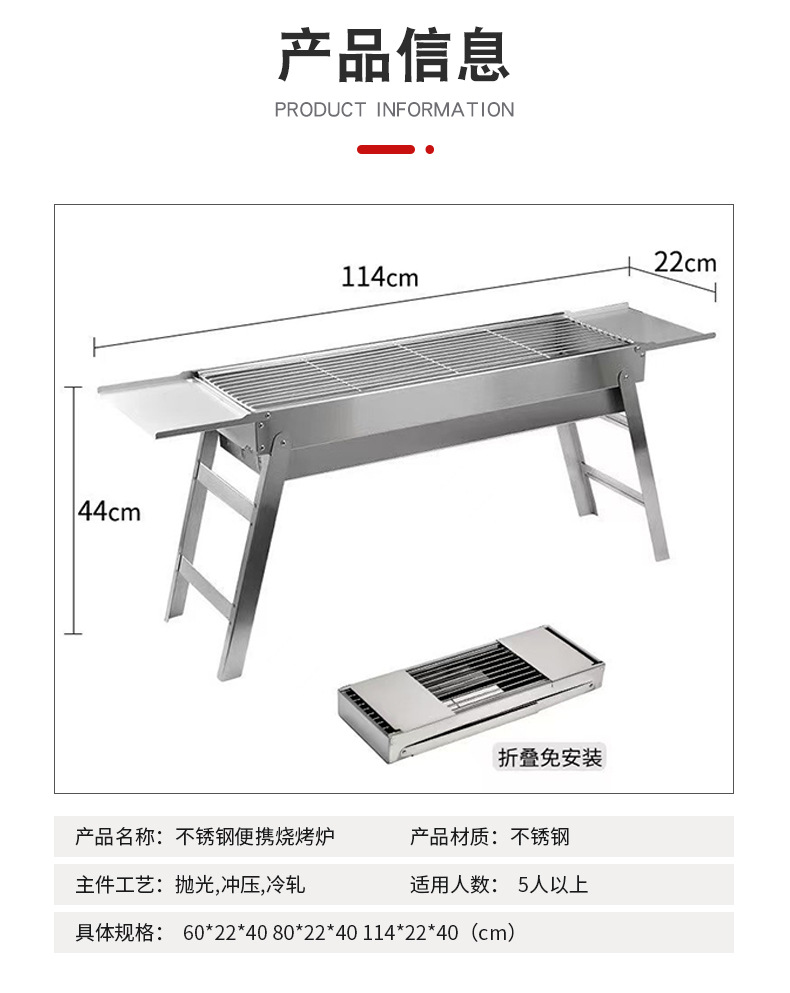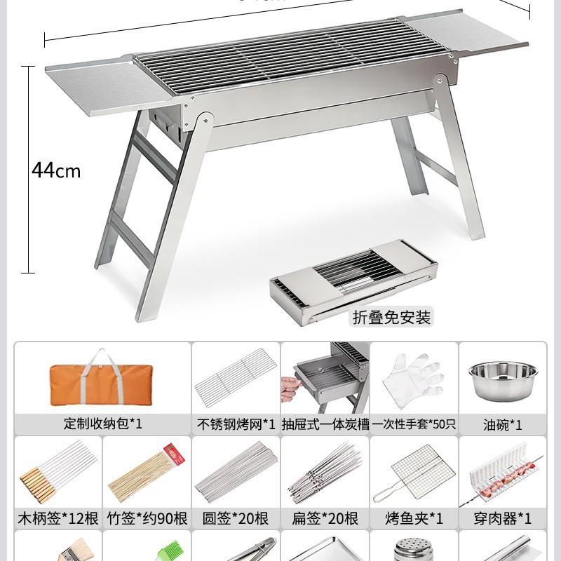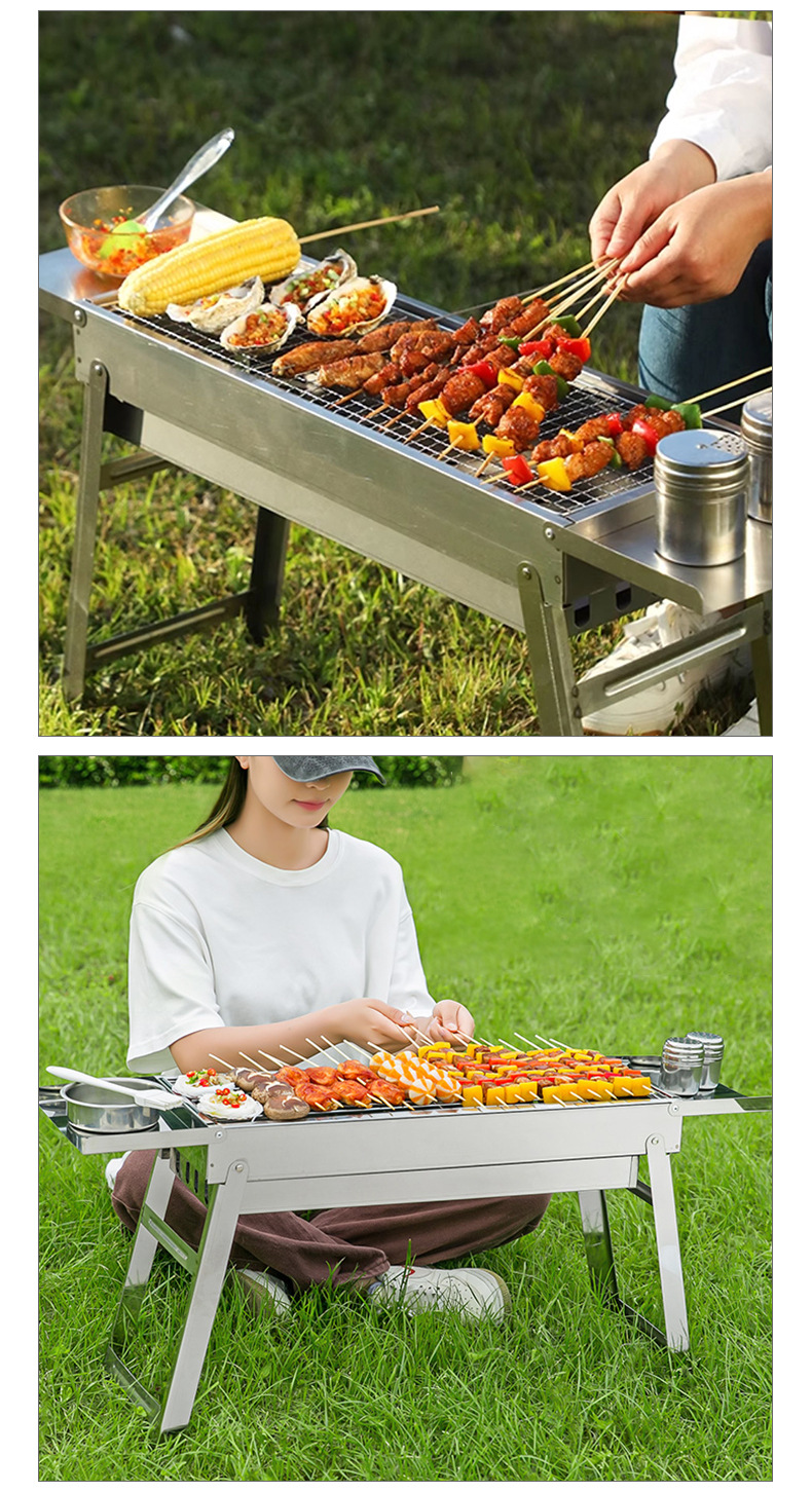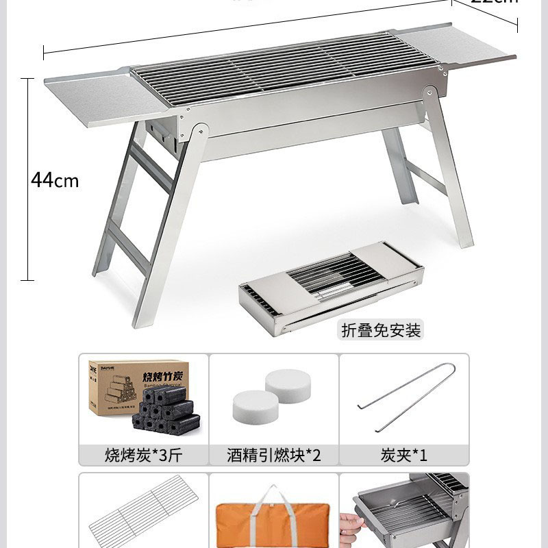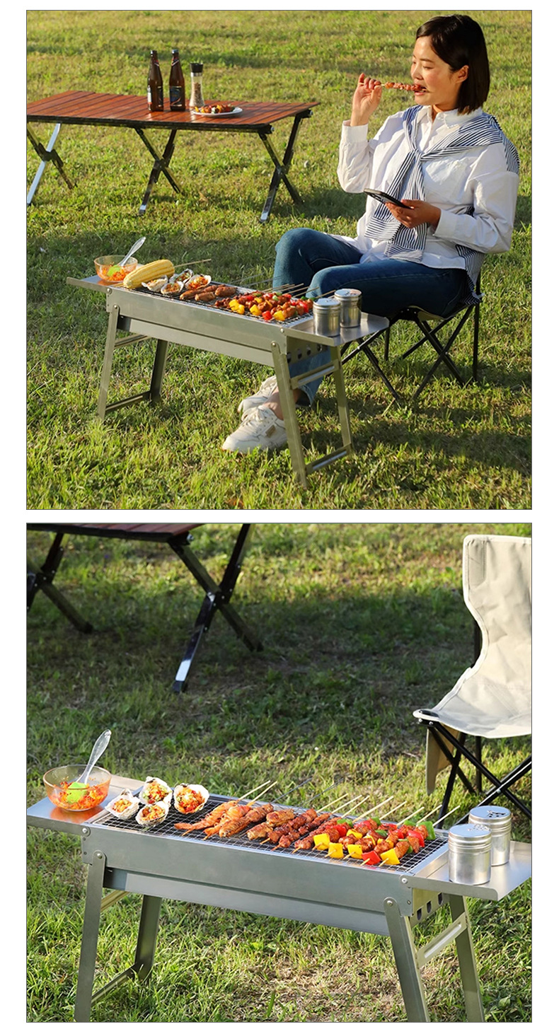 • [일체형 스테인레스] 접이식 바베큐 그릴 [꼬치 10개 세트] + 카본 1.5kg개