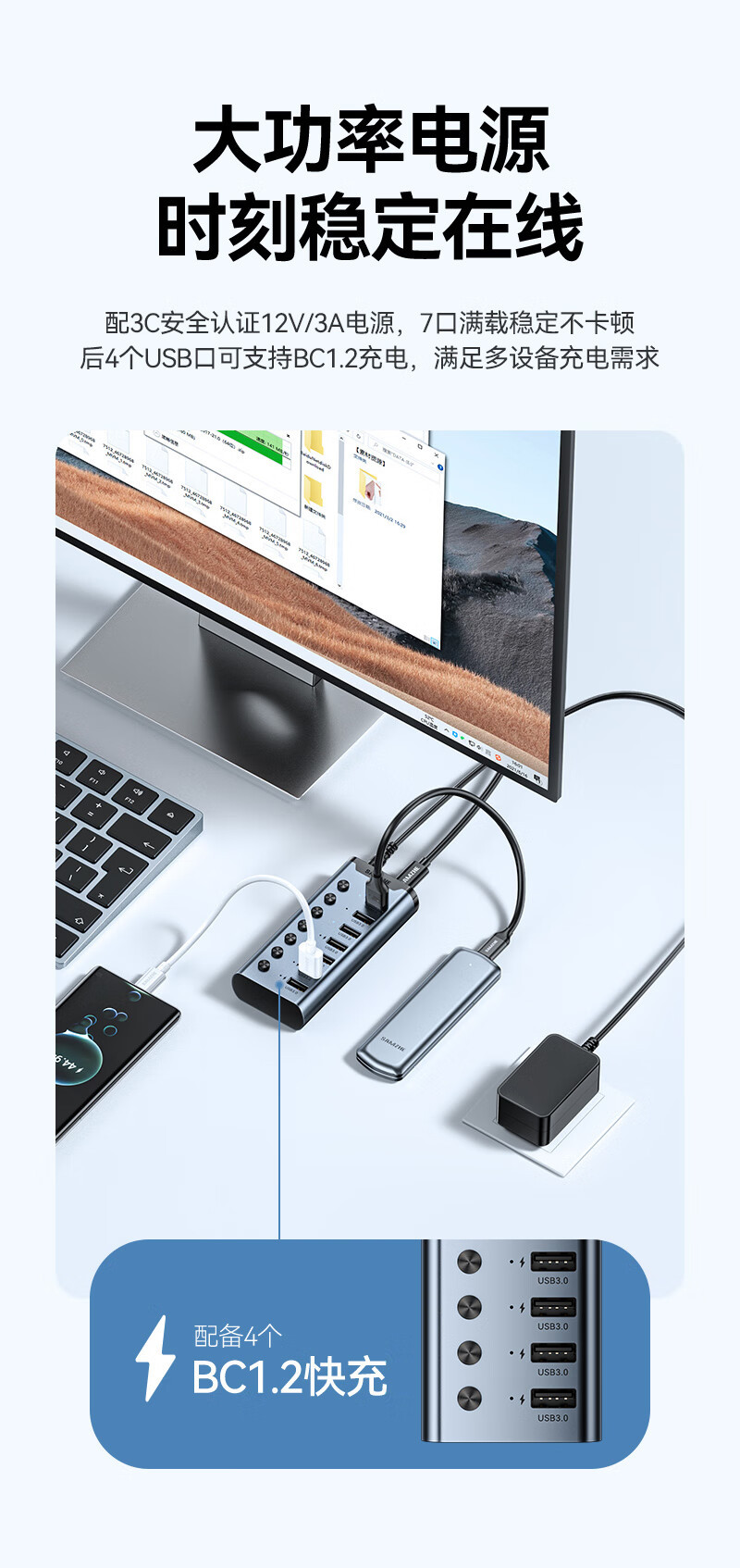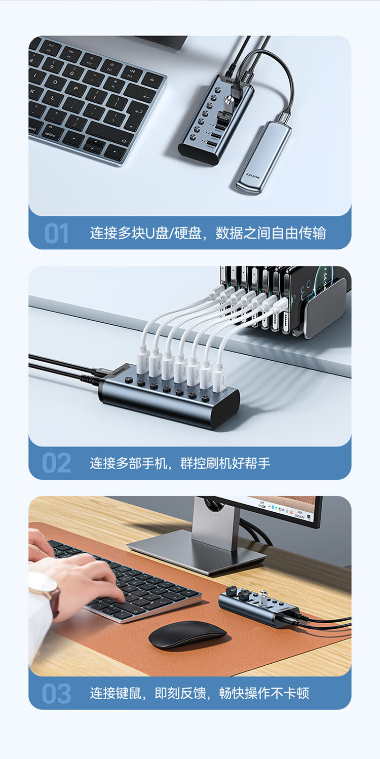 Shanze usb3.0 분배기 1-7 포트 10 포트 활성 usb 도킹 스테이션 컴퓨터-하드 드라이브 마우스 및 키보드 허브 연결