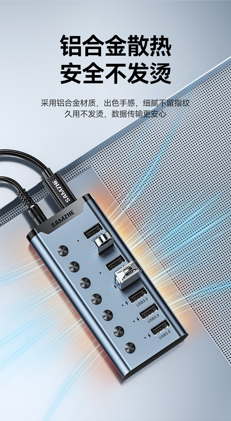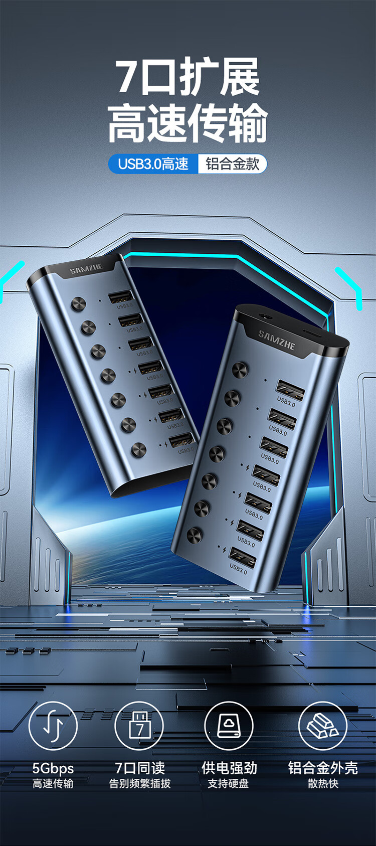 Shanze usb3.0 분배기 1-7 포트 10 포트 활성 usb 도킹 스테이션 컴퓨터-하드 드라이브 마우스 및 키보드 허브 연결스토어 가기