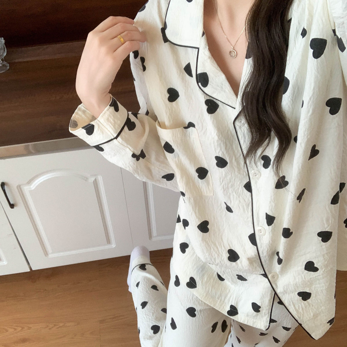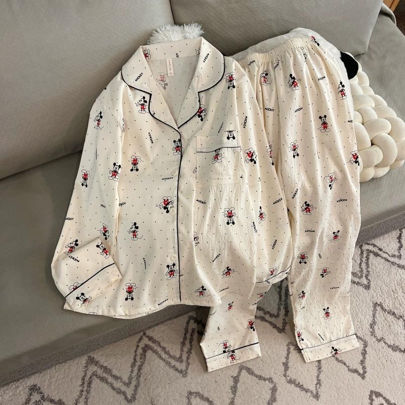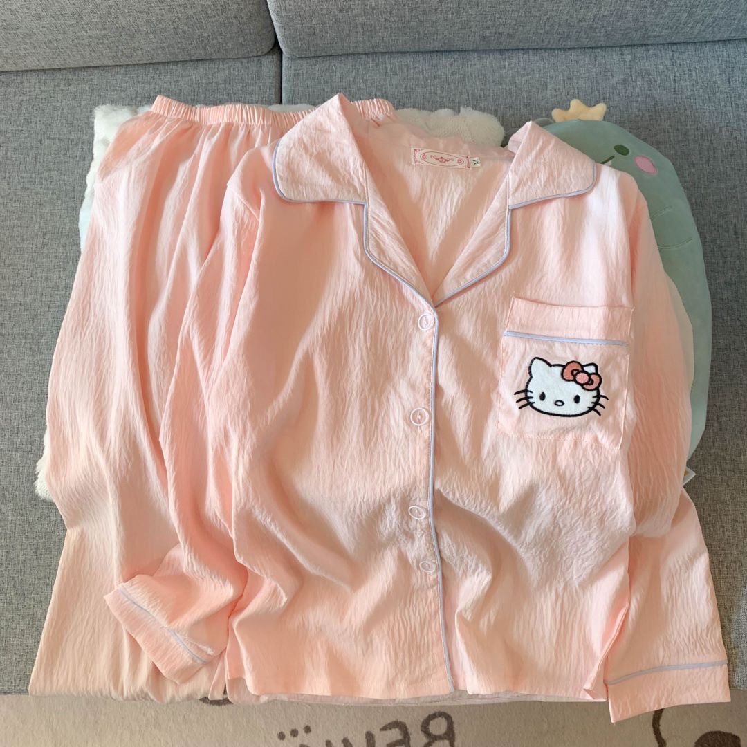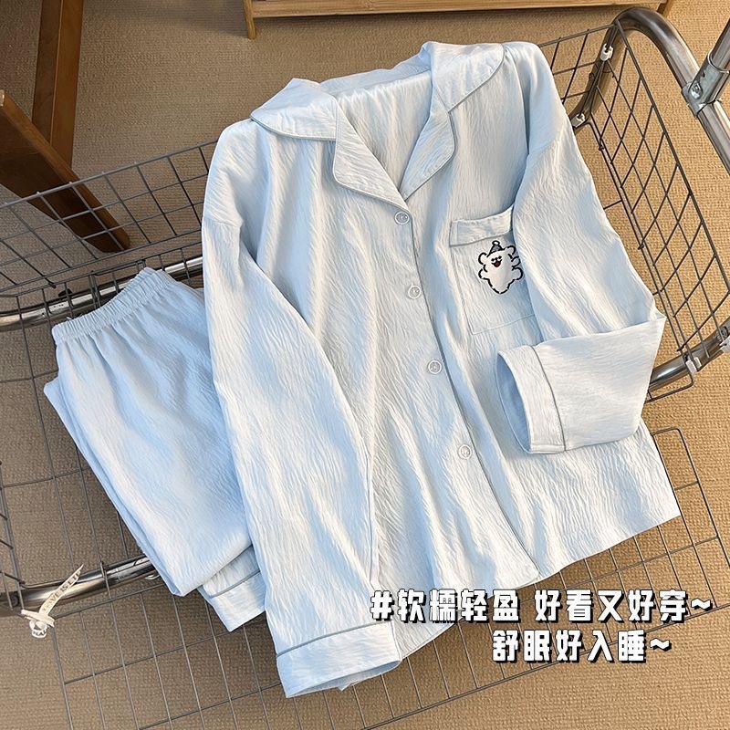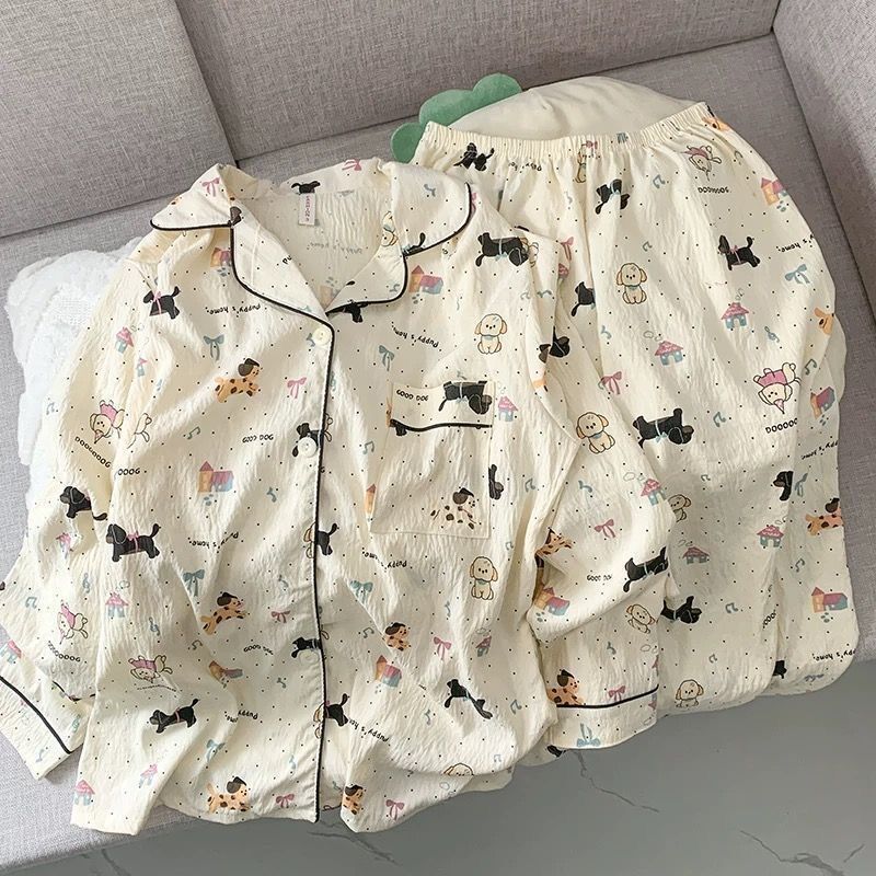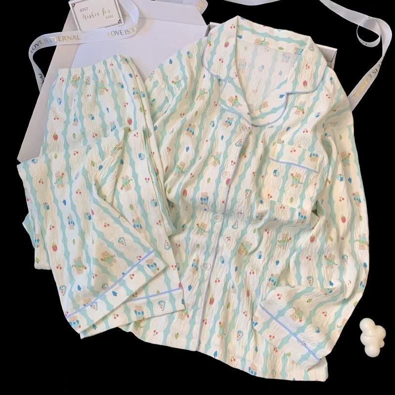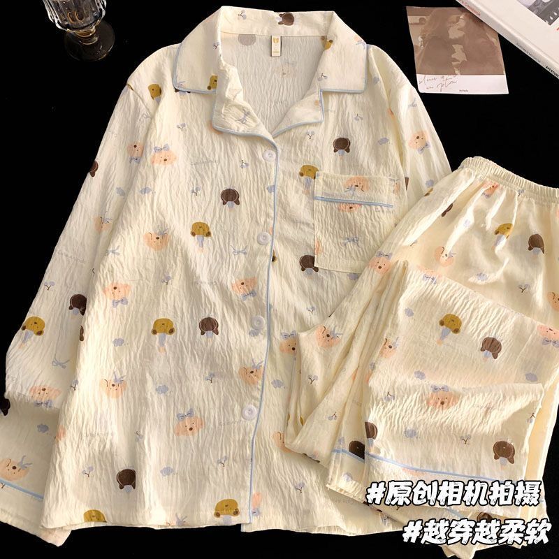 여성을위한 국경 간 대외 무역 인기 봄, 가을 잠옷 클라우드 코튼 카디건 옷깃 긴팔 바지 만화 홈웨어 여성 정장