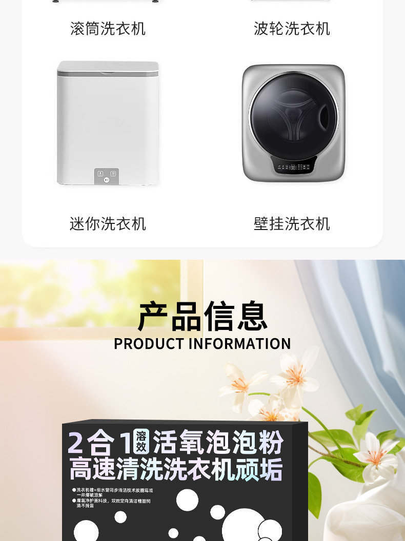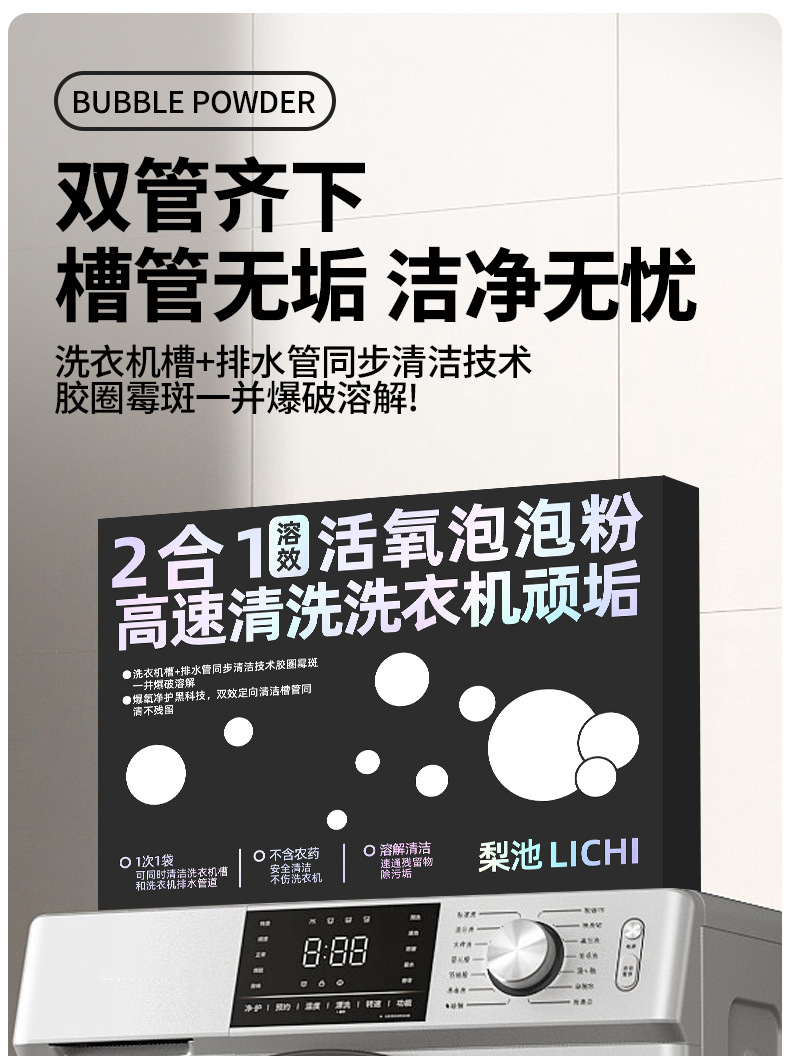 세탁기 활성산소 버블 파우더 세척제, 강력한 석회질 제거 및 냄새 제거, 세탁기 탱크 얼룩 롤러를 깊숙이 청소