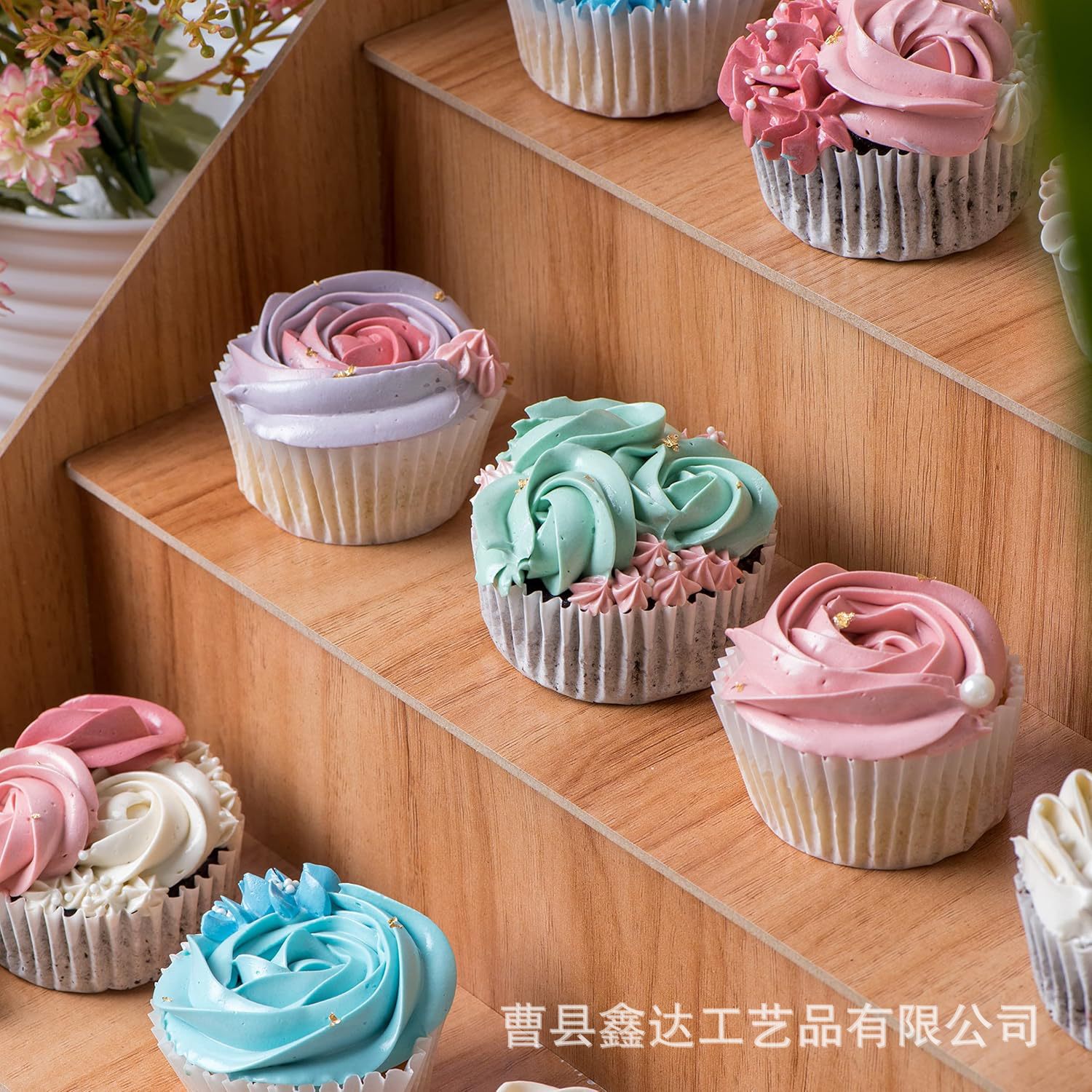 나무 수납 선반 다층 케이크 가게 하트 디스플레이 선반 단단한 나무 화분 다육 식물 정리 선반 사다리꼴 수납 선반스토어 가기