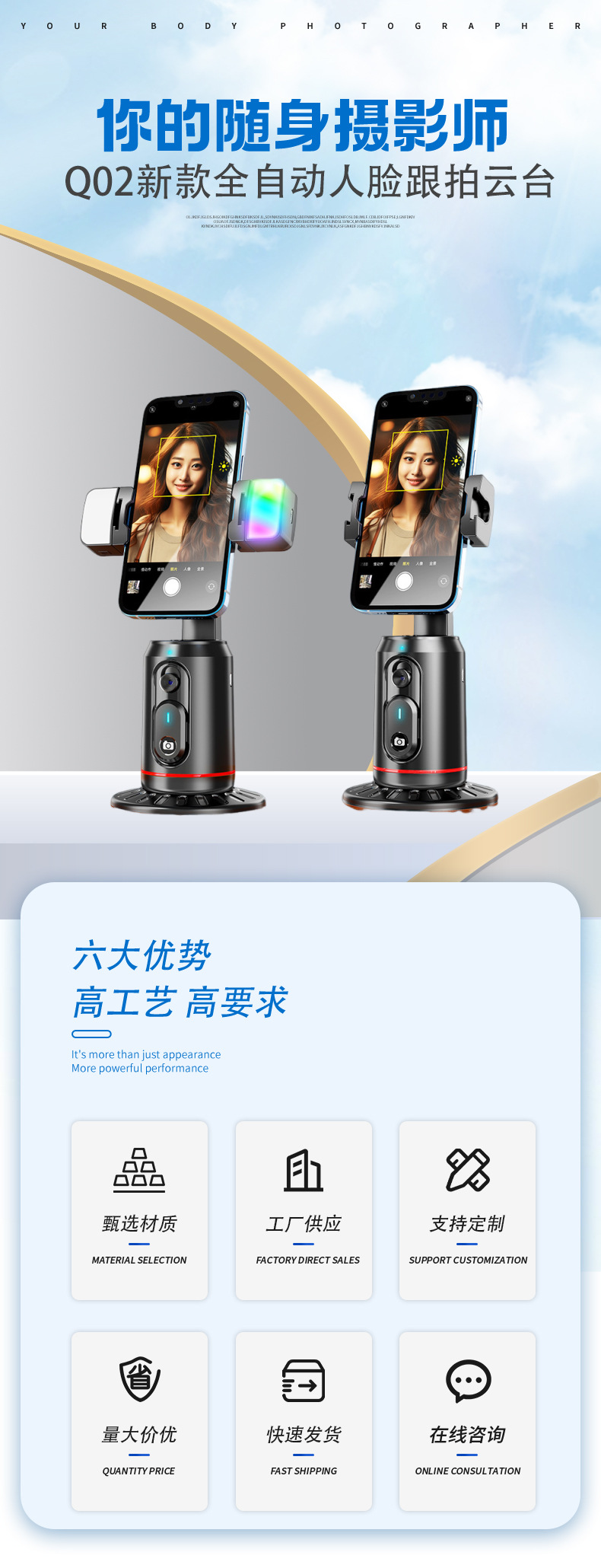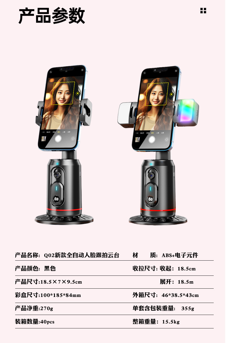 Q02 새로운 완전 자동 얼굴 캡처 PTZ 다기능 휴대 전화 라이브 스트리밍 직접 셀카 스틱 AI 제스처 제어스토어 가기