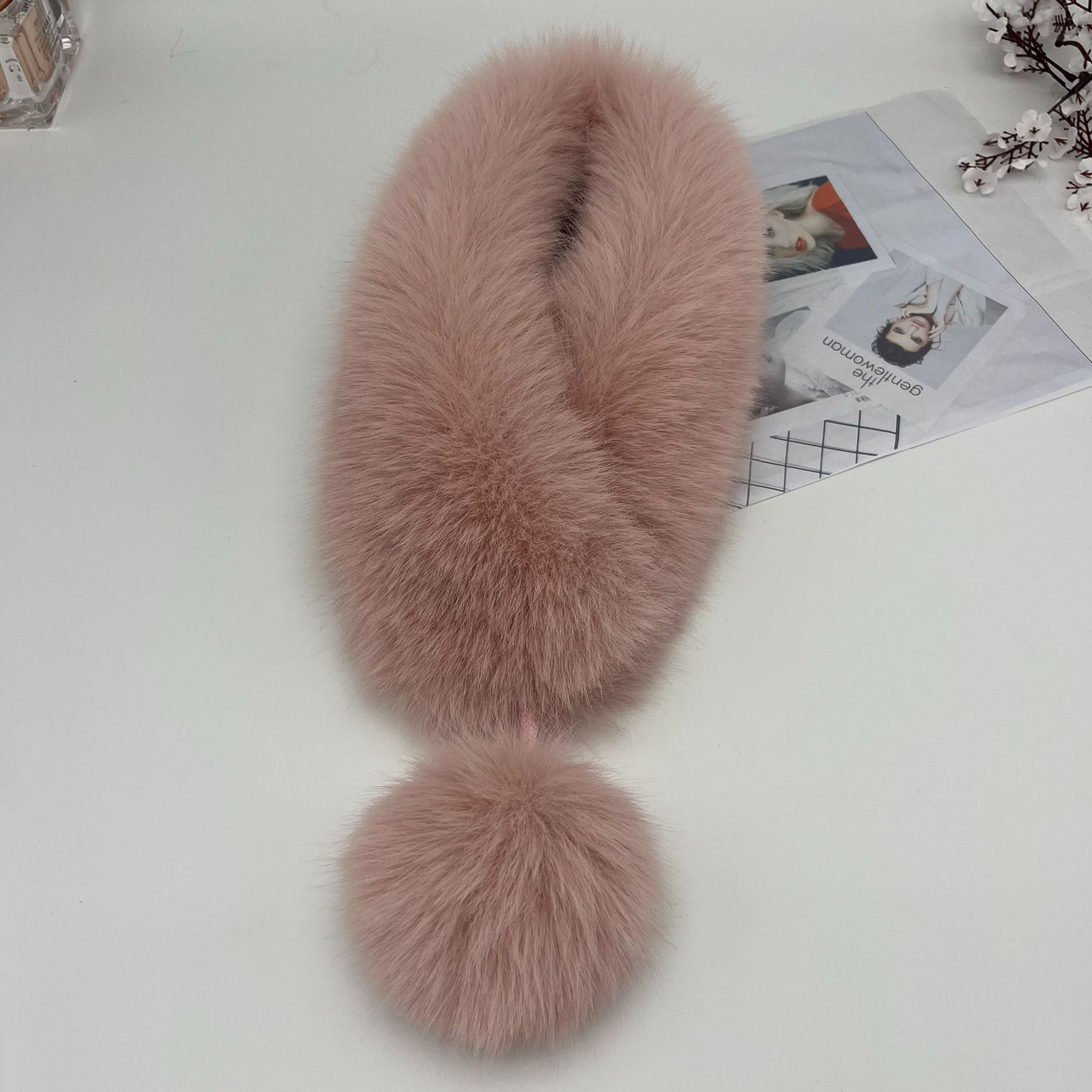 여성용 모조 여우 모피 스카프, 따뜻한 모피 칼라, 두꺼운 모피 스카프, 짧은 대형 모피 볼 모피 칼라, 인터넷 연예인 스카프스토어 가기