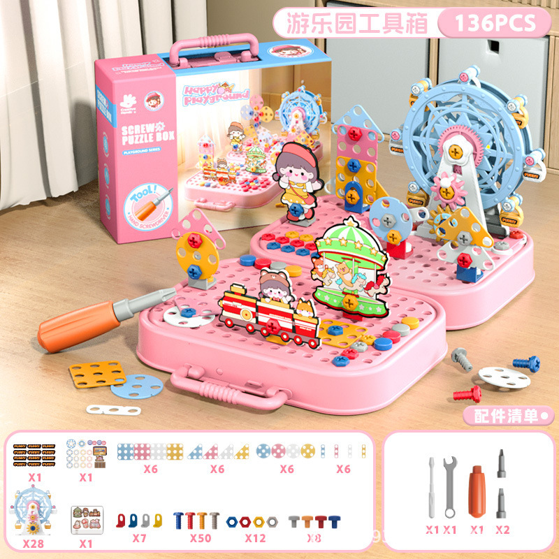 • 핑크 전동 관람차 216개 세트 + 전동 드릴
