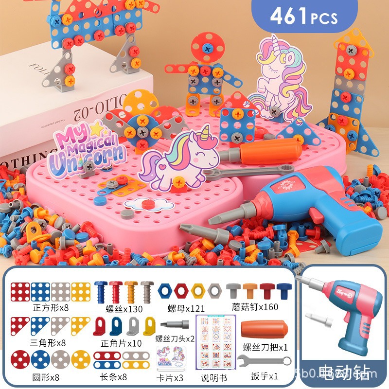 아기 나사 어린이 장난감 조립 도구 3 세 전기 드릴 교육 소년 어린이 날 선물