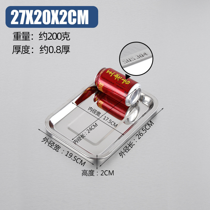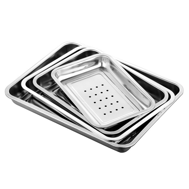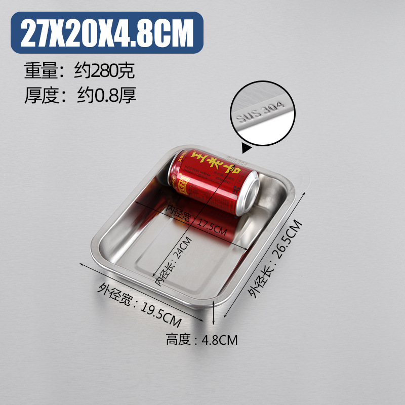 스테인레스 스틸 사각 접시, 바닥이 평평한 바베큐 접시, 만두 접시, 레스토랑 찐 밥 접시, 다용도 접시, 두꺼운 직사각형 트레이스토어 가기