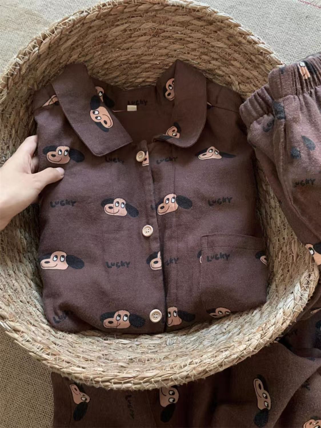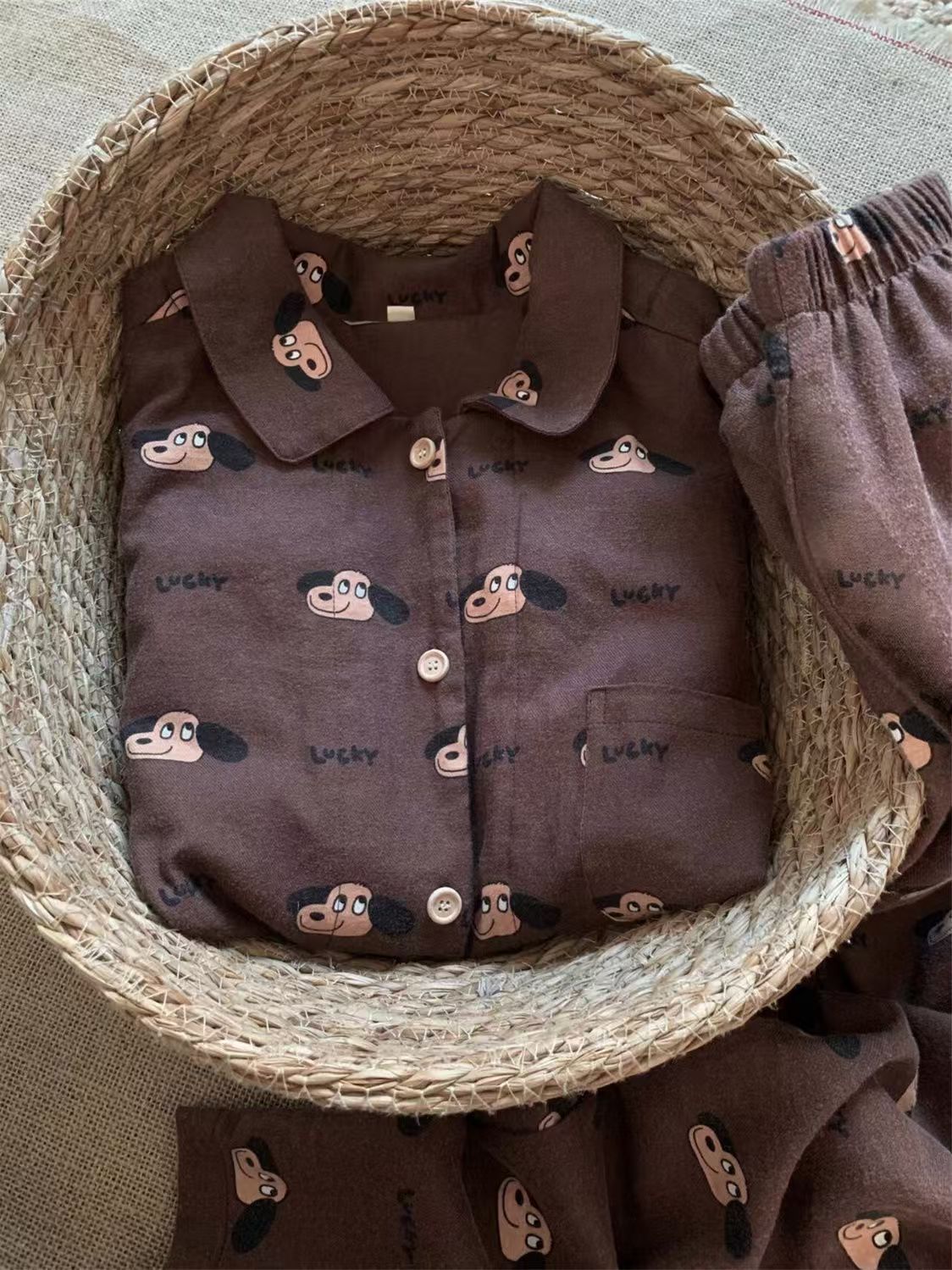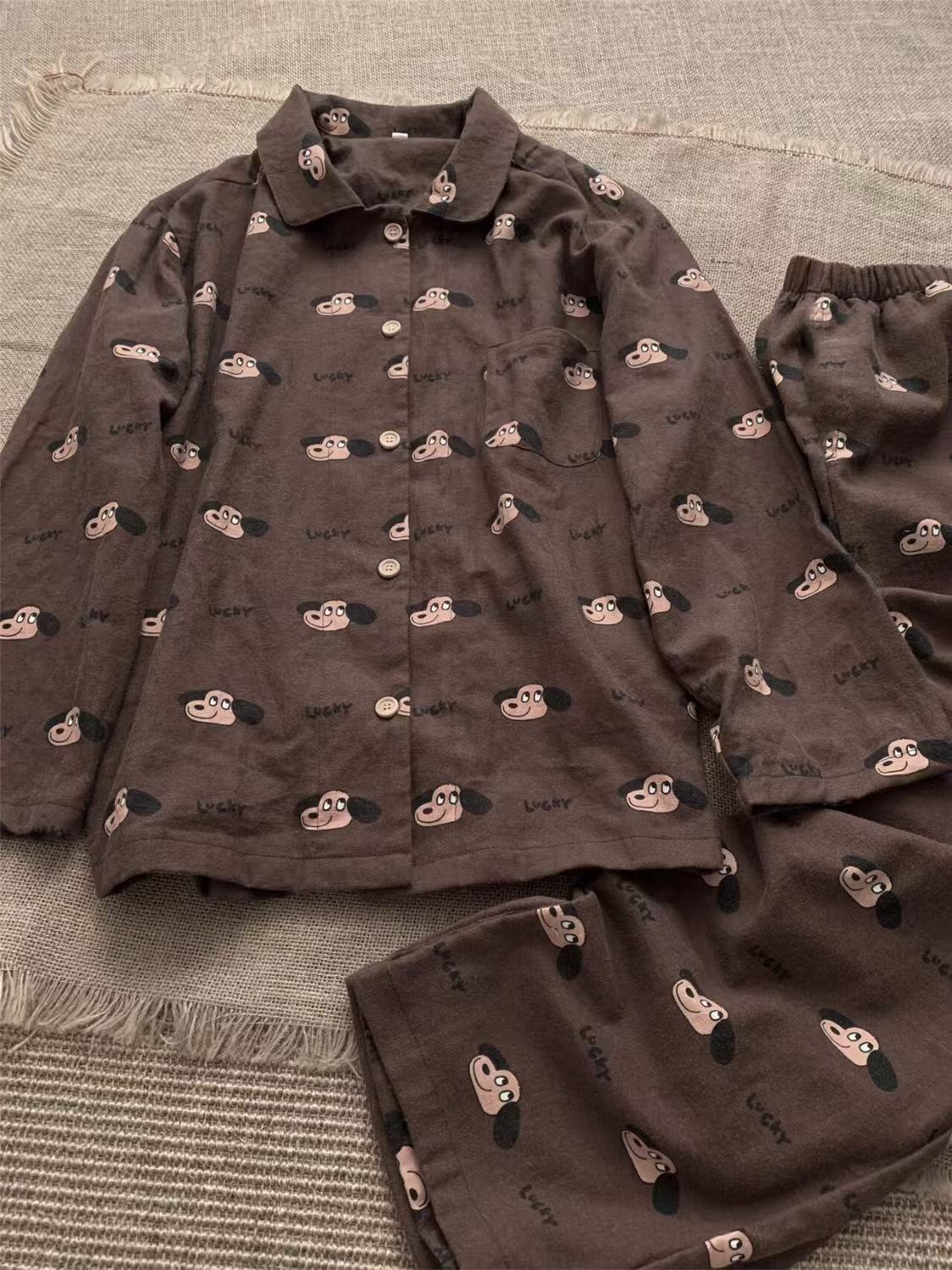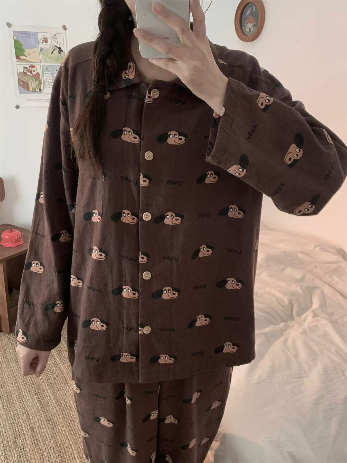 여성을위한 달콤하고 귀여운 만화 커피 강아지 잠옷 봄, 가을 긴팔 바지 아름다운 소녀 가정 의류 투피스 세트스토어 가기