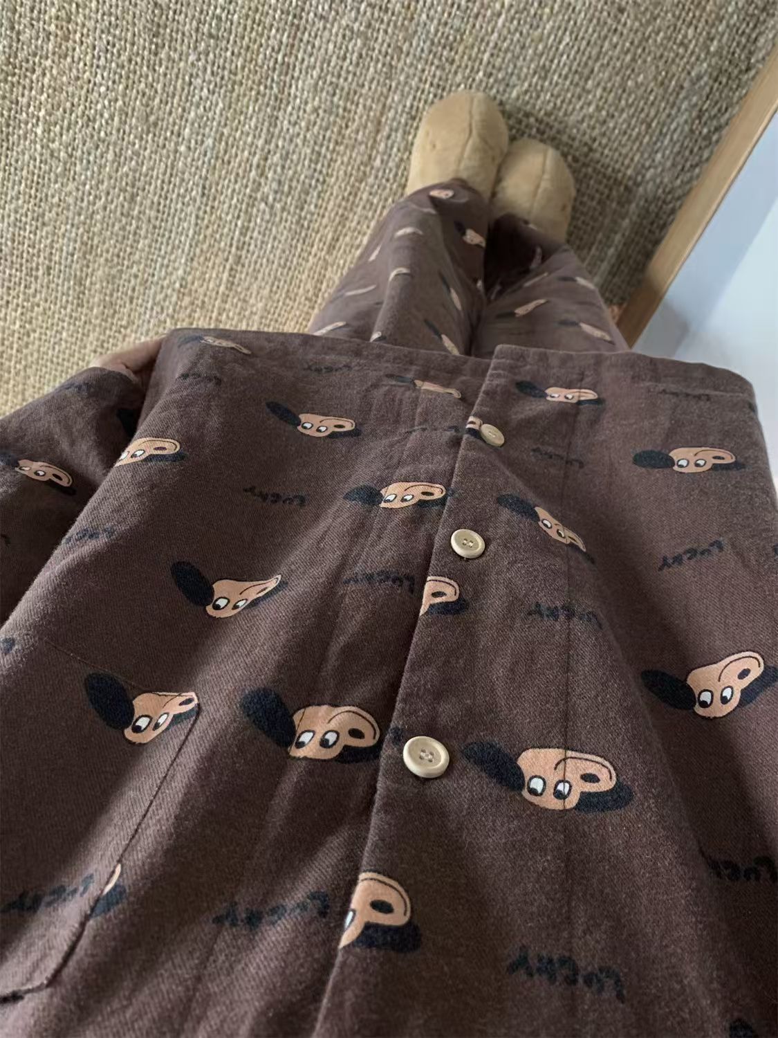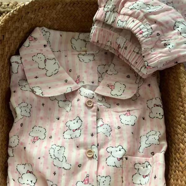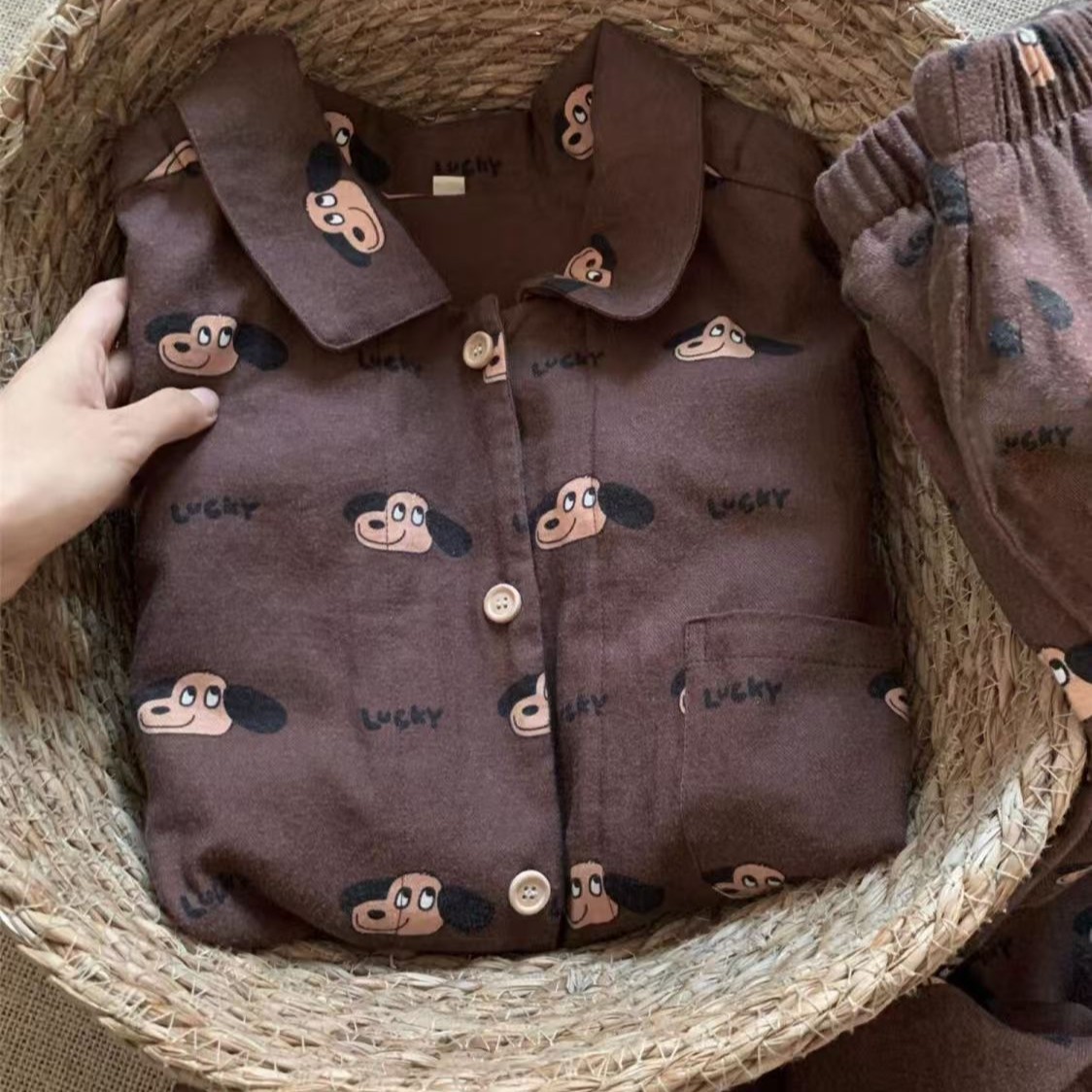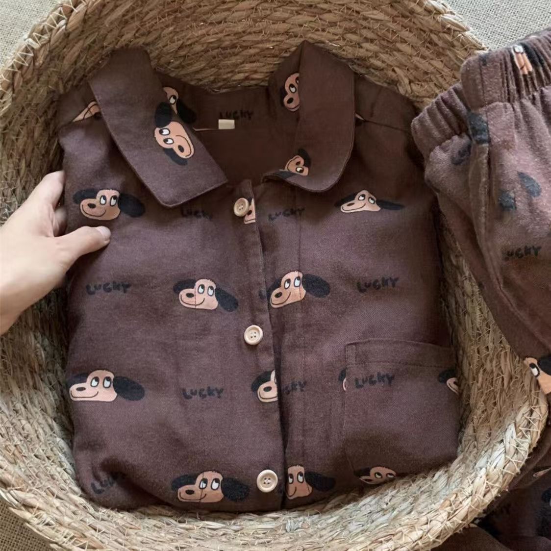 여성을위한 달콤하고 귀여운 만화 커피 강아지 잠옷 봄, 가을 긴팔 바지 아름다운 소녀 가정 의류 투피스 세트스토어 가기