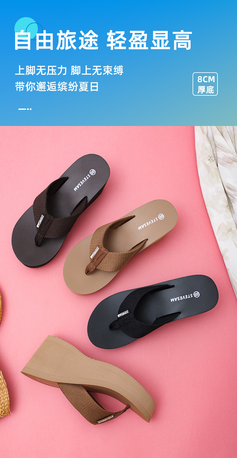 두꺼운 밑창 슬리퍼 여성 8cm 겉옷 2025 새로운 여름 해변 높이 증가 비치 샌들 및 슬리퍼 제조 업체스토어 가기