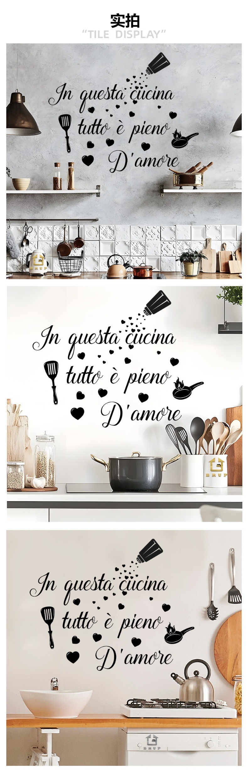 ZN3928E 검은 실루엣 스페인어 주방 용품 자체 접착 스티커 ins 스타일 주방 레스토랑 벽 장식 벽 스티커스토어 가기