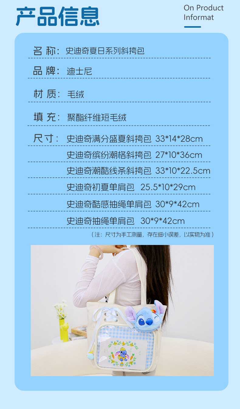 디즈니 정품 스티치 숄더백 크로스 바디 인형 가방 대용량 통근 소녀 학생 선물 도매스토어 가기