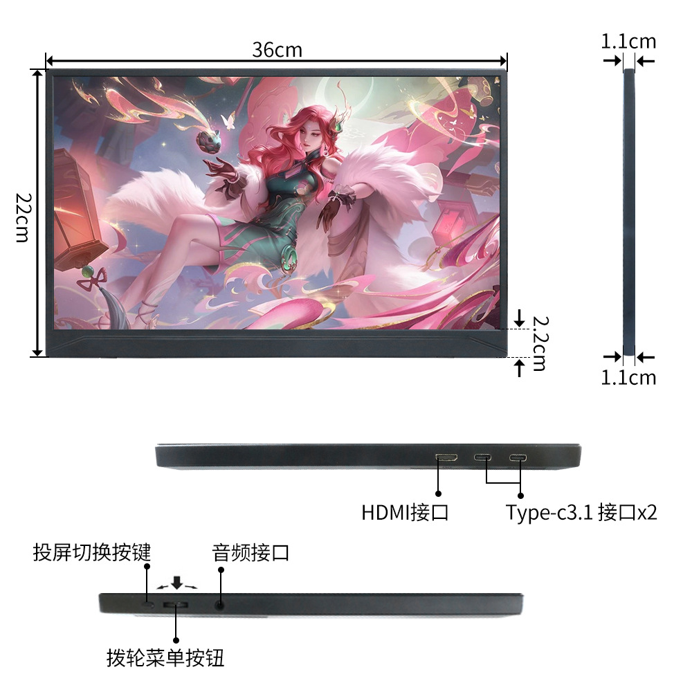 제조업체의 새로운 15.6inch HDMI 휴대용 디스플레이 스위치박스 노트북 고화질 외부 확장 화면스토어 가기