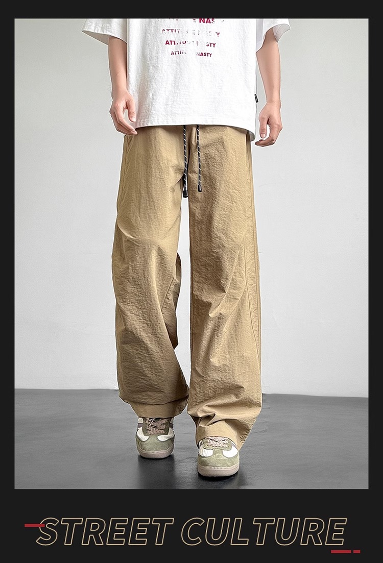 NASA 아이스 실크 캐주얼 바지 남성 여름 얇은 통기성 스트레이트 루즈 스포츠 바지 미국 트렌디 브랜드 파라슈트 바지스토어 가기
