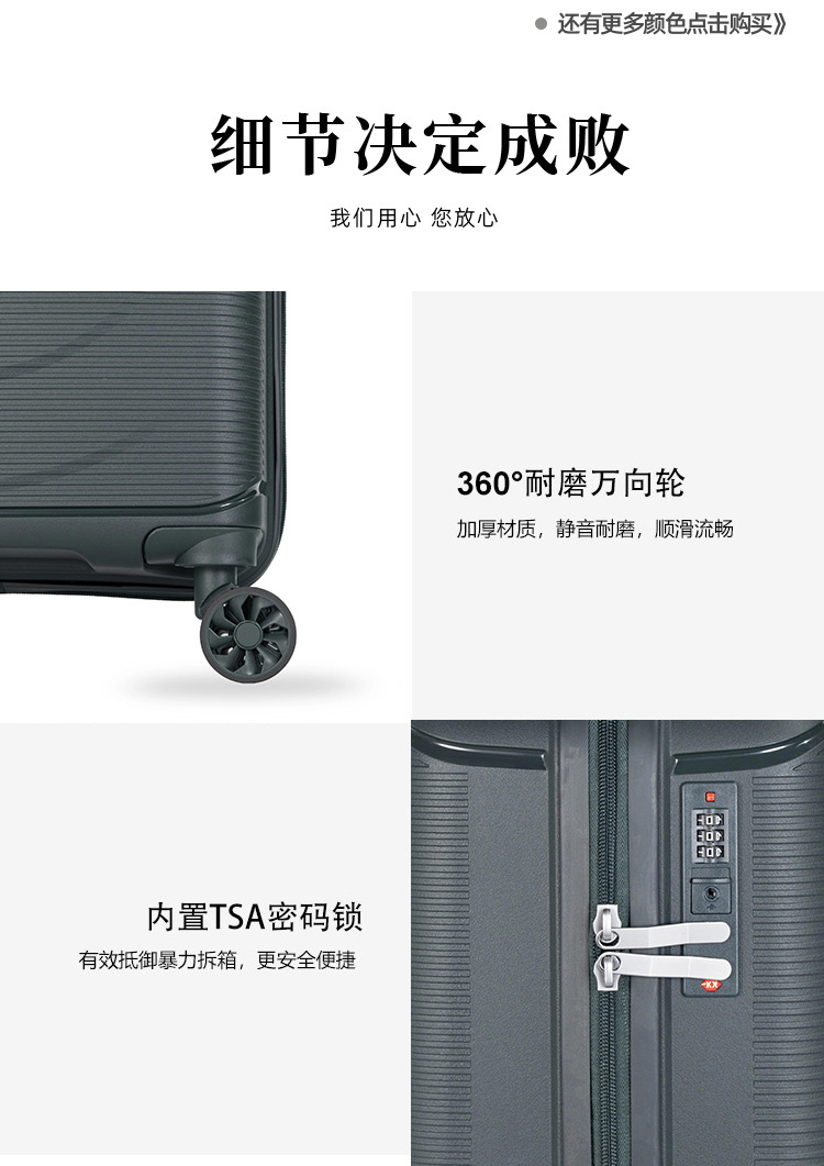 PP 소재 여행가방, 방폭 지퍼, 3피스 탑승용 여행가방, 무소음 범용 휠 트롤리 케이스, 멀티 사이즈스토어 가기