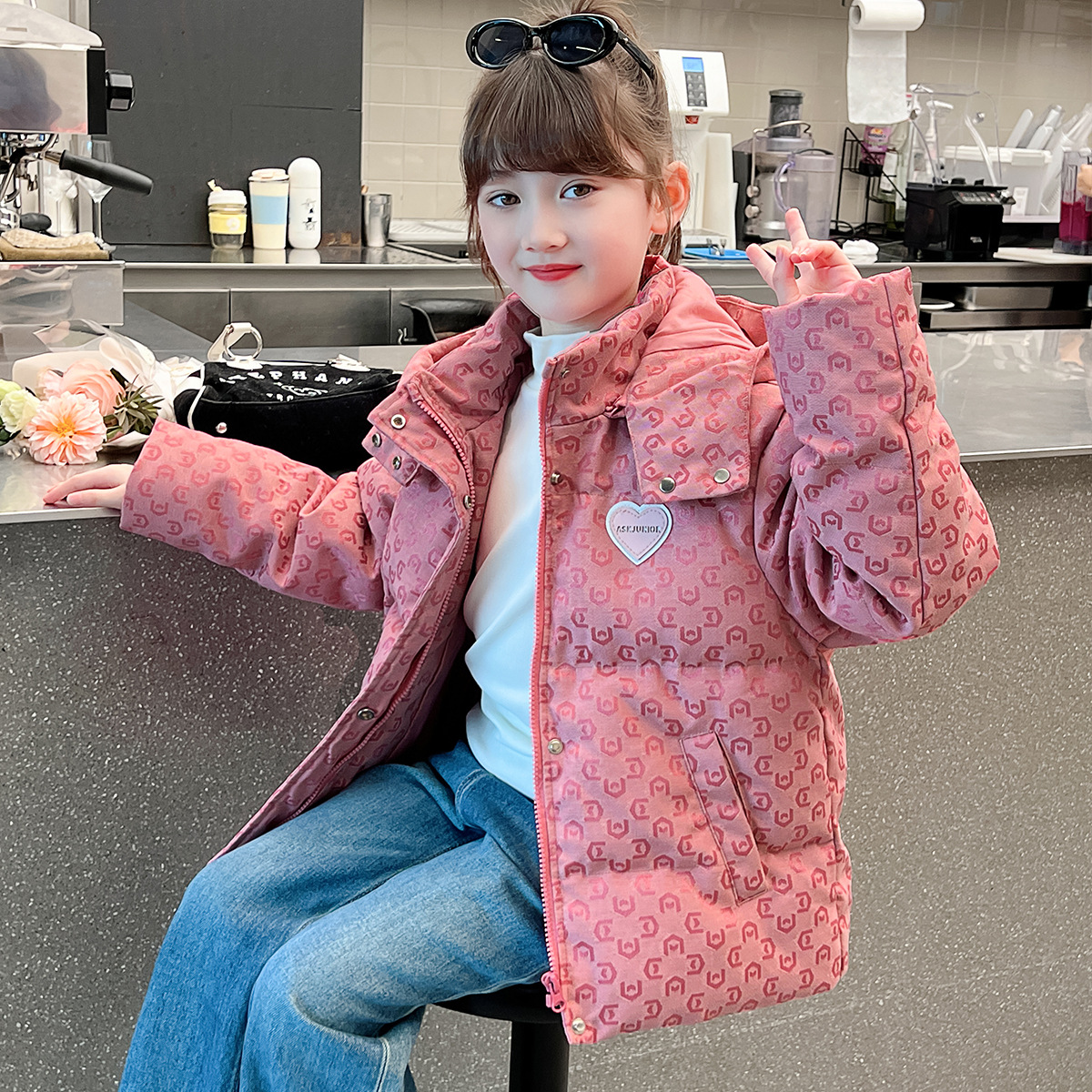 2025년 신상 겨울 여아 면 코트, 패셔너블한 아동용 두꺼운 면 코트, 중대형 아동용 겨울 여아 면 패딩 재킷
