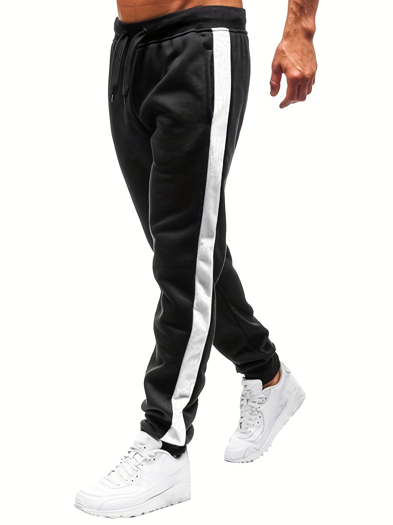 새로운 크로스보더 유럽과 미국 캐주얼 플리스 남성 바지 청소년 데일리 스포츠 바지 스트라이프 컬러 매칭 대외 무역 스웨트 팬츠스토어 가기
