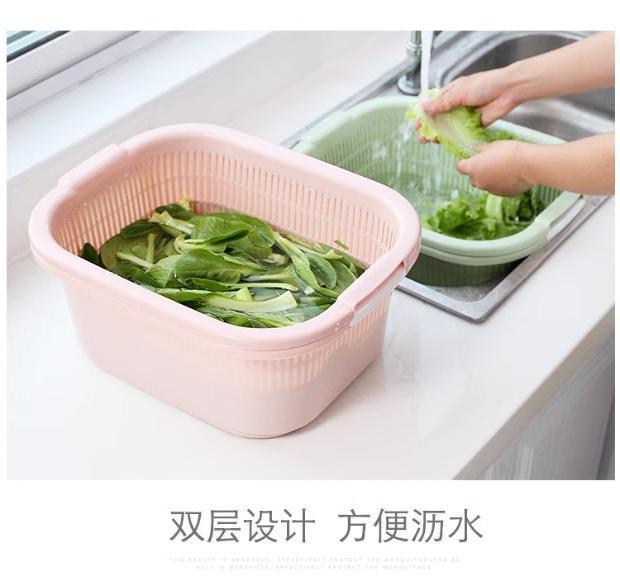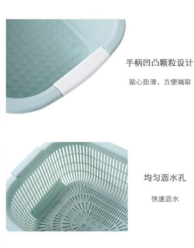대형 두꺼운 다기능 주방 과일 접시, 야채 바구니, 배수 바구니, 창의적인 이중층 가정용 플라스틱 바구니