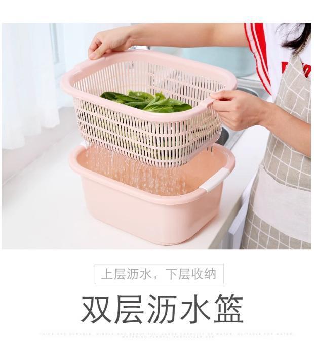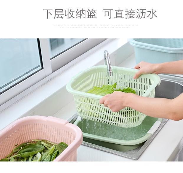 대형 두꺼운 다기능 주방 과일 접시, 야채 바구니, 배수 바구니, 창의적인 이중층 가정용 플라스틱 바구니스토어 가기