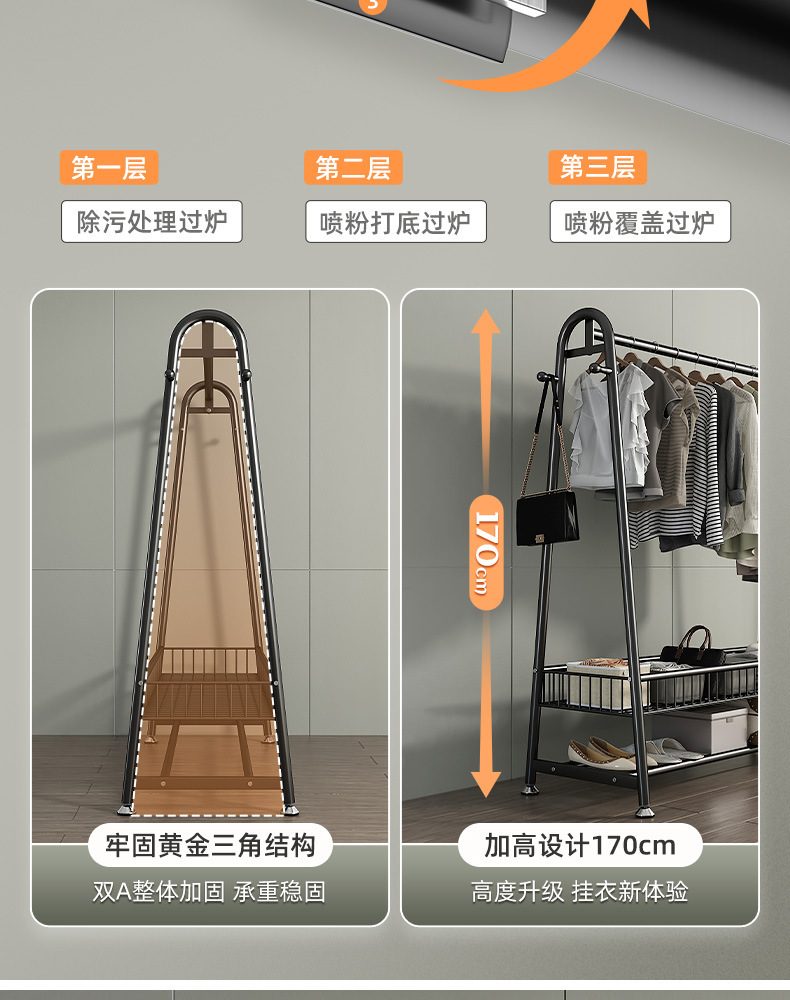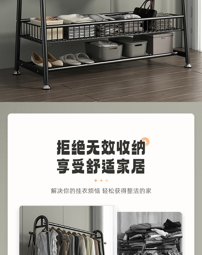 • [매우 두꺼운 튜브 25개] 우아한 블랙 - 길이 80*높이 170丨업그레이드된 이중 레이어 보관 바구니