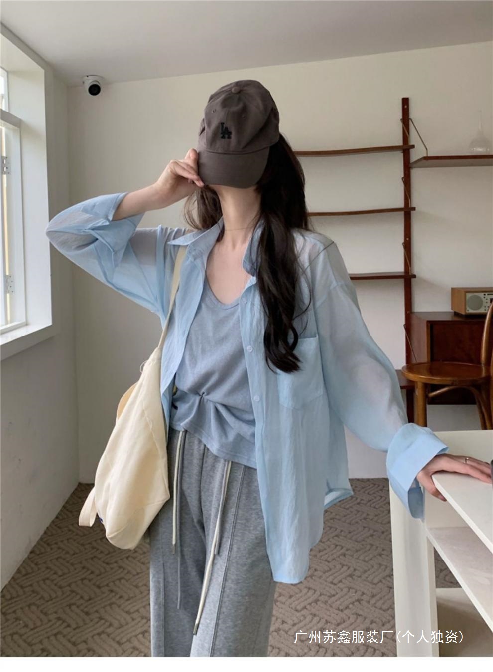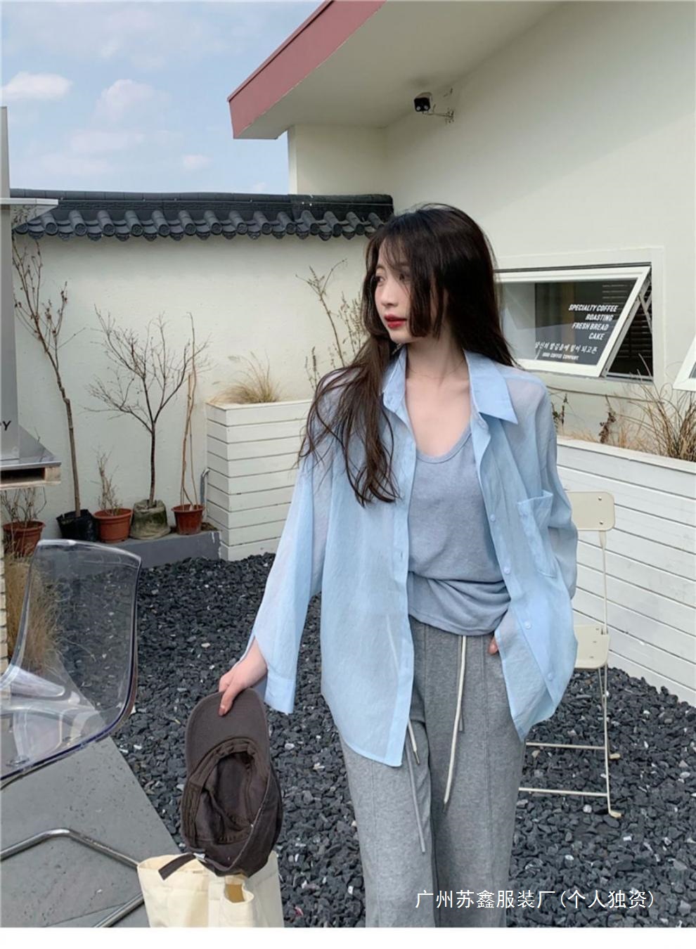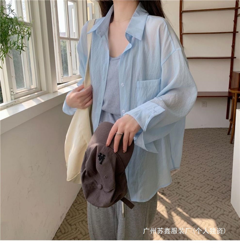 여성용 아우터 드레이프 텐셀 셔츠, 얇은 봄 여름 한국식 루즈 캐주얼 얇은 셔츠, 긴팔 자외선 차단 탑스토어 가기