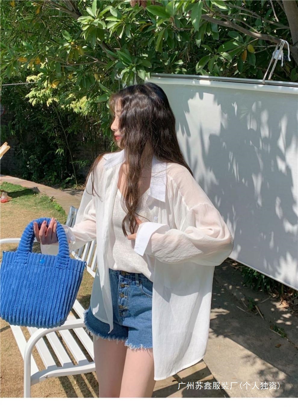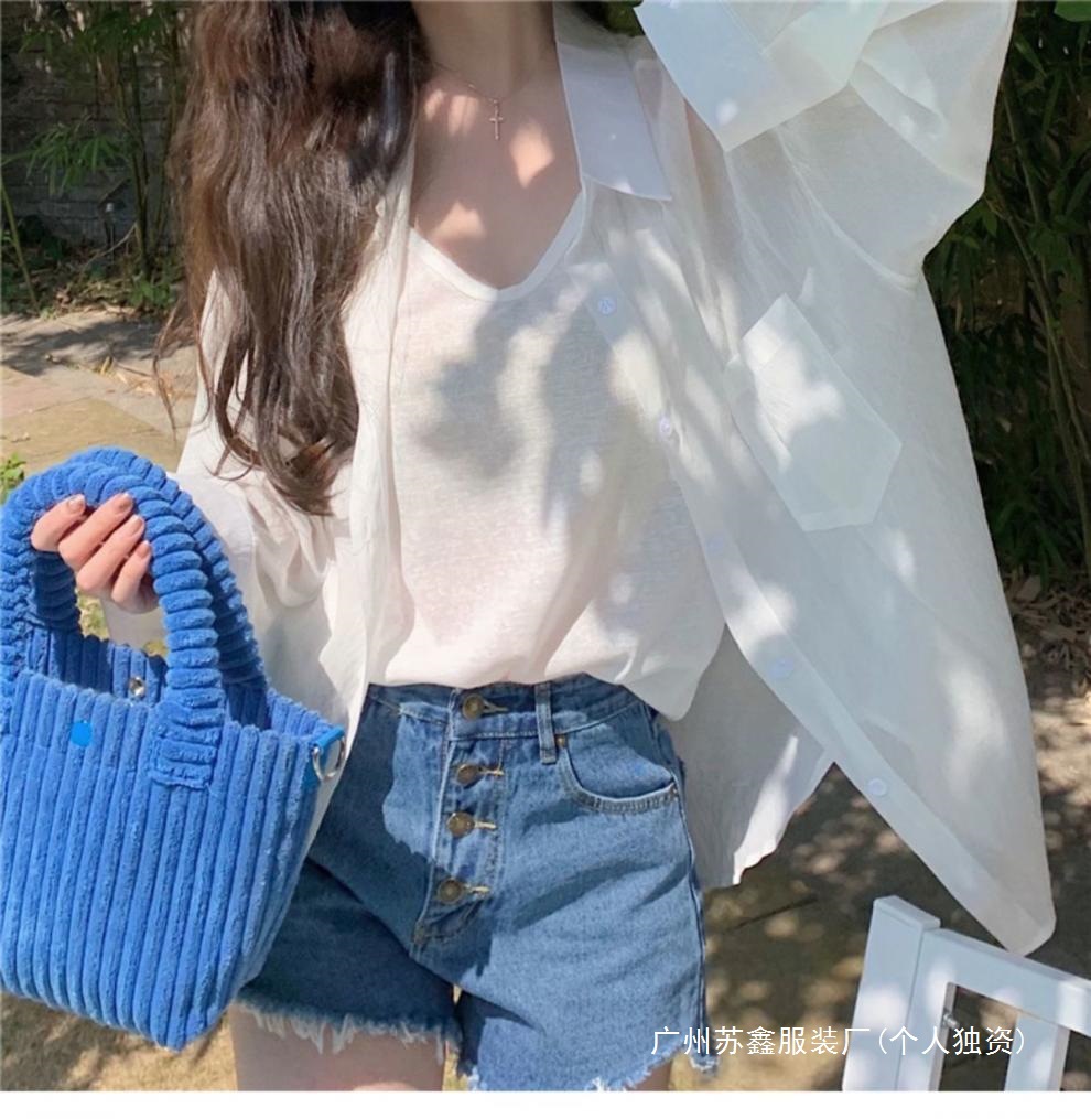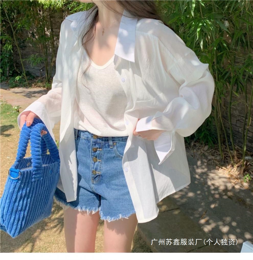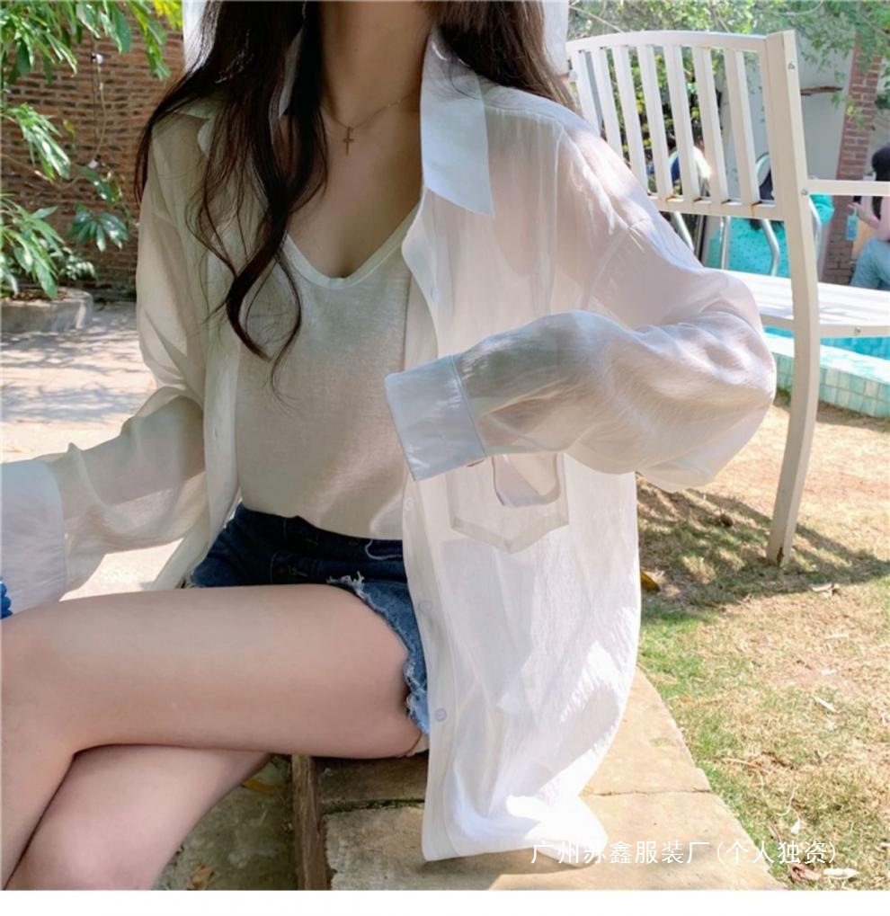 여성용 아우터 드레이프 텐셀 셔츠, 얇은 봄 여름 한국식 루즈 캐주얼 얇은 셔츠, 긴팔 자외선 차단 탑스토어 가기