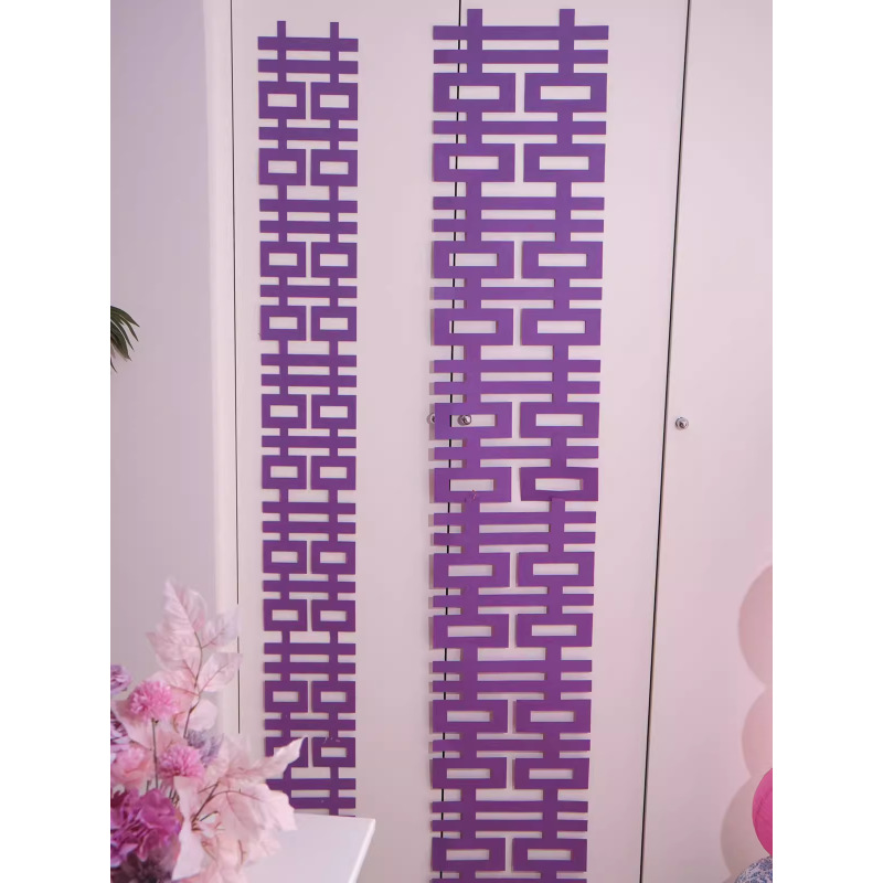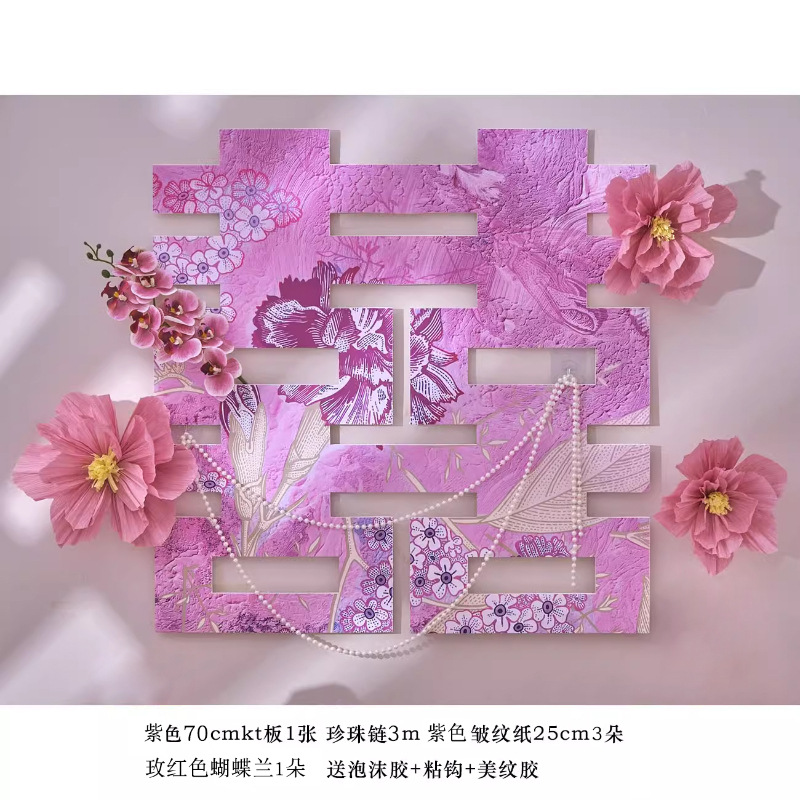 보라색 웨딩룸 분위기 레이아웃 웨딩 새집 거실 침실 커튼 장식 행복한 단어 긴 나비 꽃 웨딩