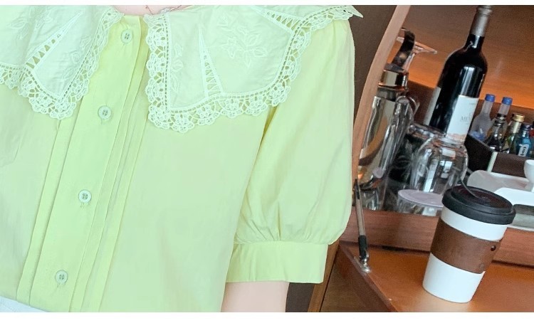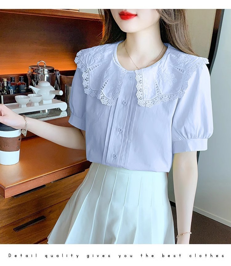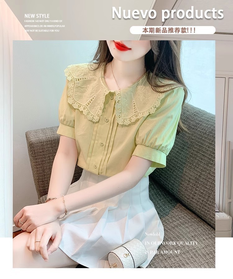 Q7N 여성용 반팔 쉬폰 셔츠, 루즈핏 슬리밍 인형 칼라 셔츠, 패셔너블한 아우터웨어스토어 가기