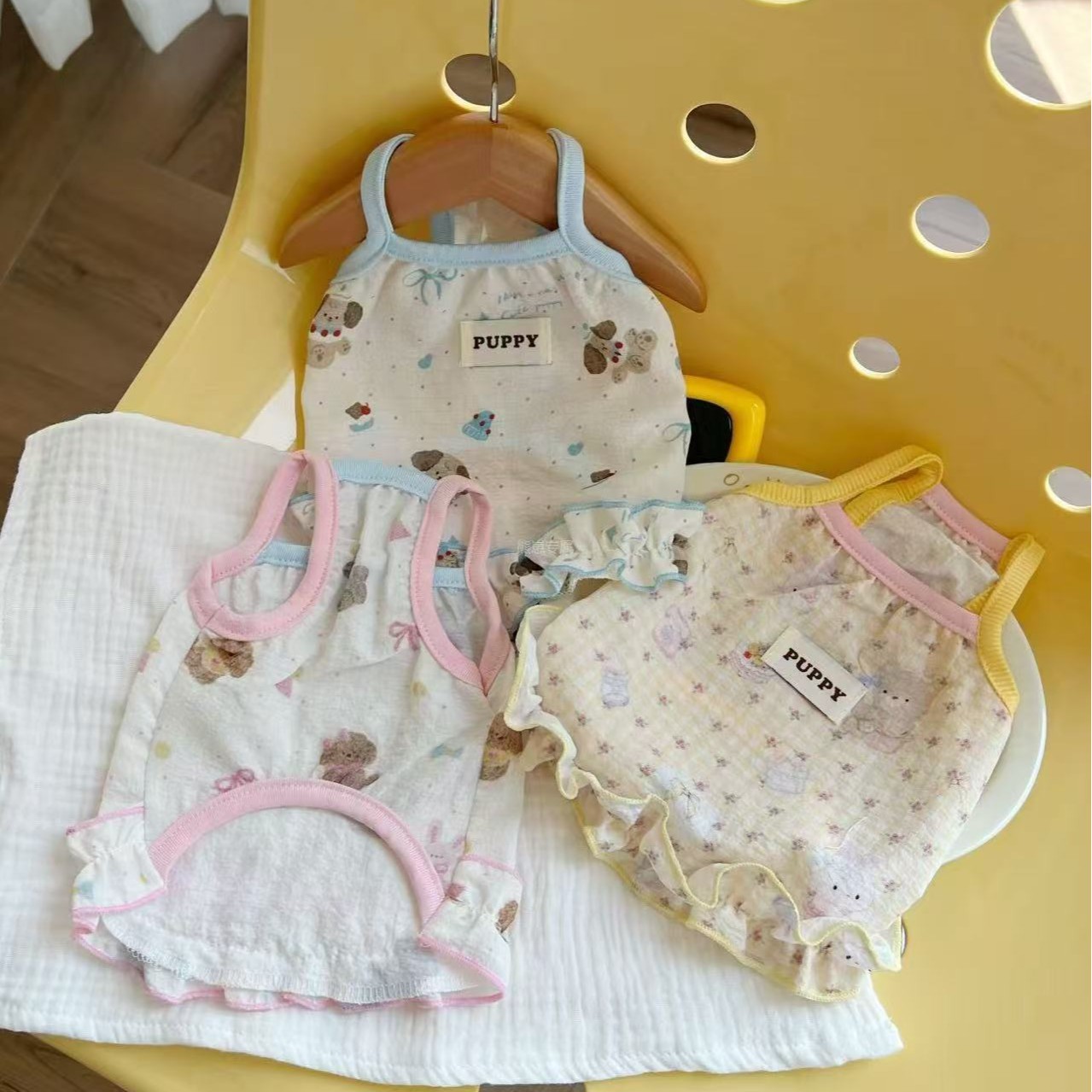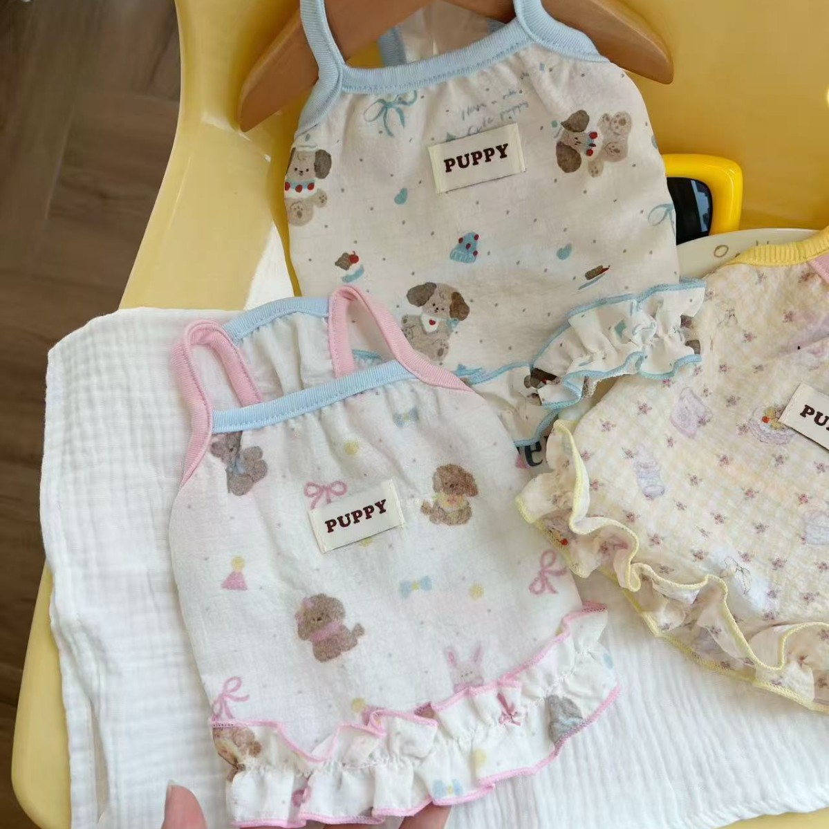 봄과 여름 얇은 애완 동물 개와 고양이 면사 꽃 스커트 옷 작은 개 포메라니안 비숑 테디 도매스토어 가기
