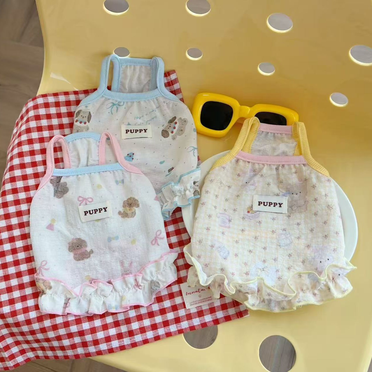 봄과 여름 얇은 애완 동물 개와 고양이 면사 꽃 스커트 옷 작은 개 포메라니안 비숑 테디 도매