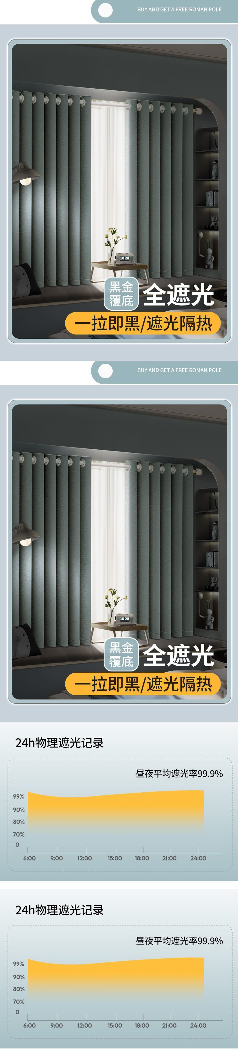 침실용 커튼, 펀치 없는 차광, 햇빛 차단, 로만로드, 펀치 없는 커튼, 발코니 침실에 적합스토어 가기