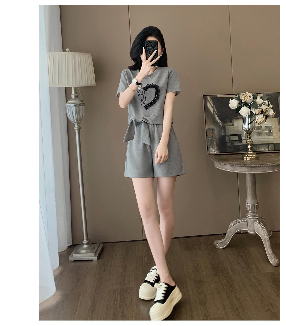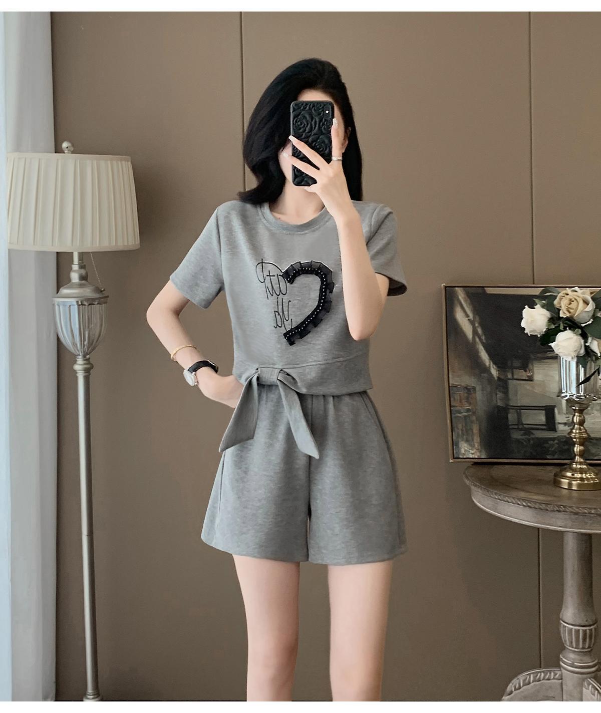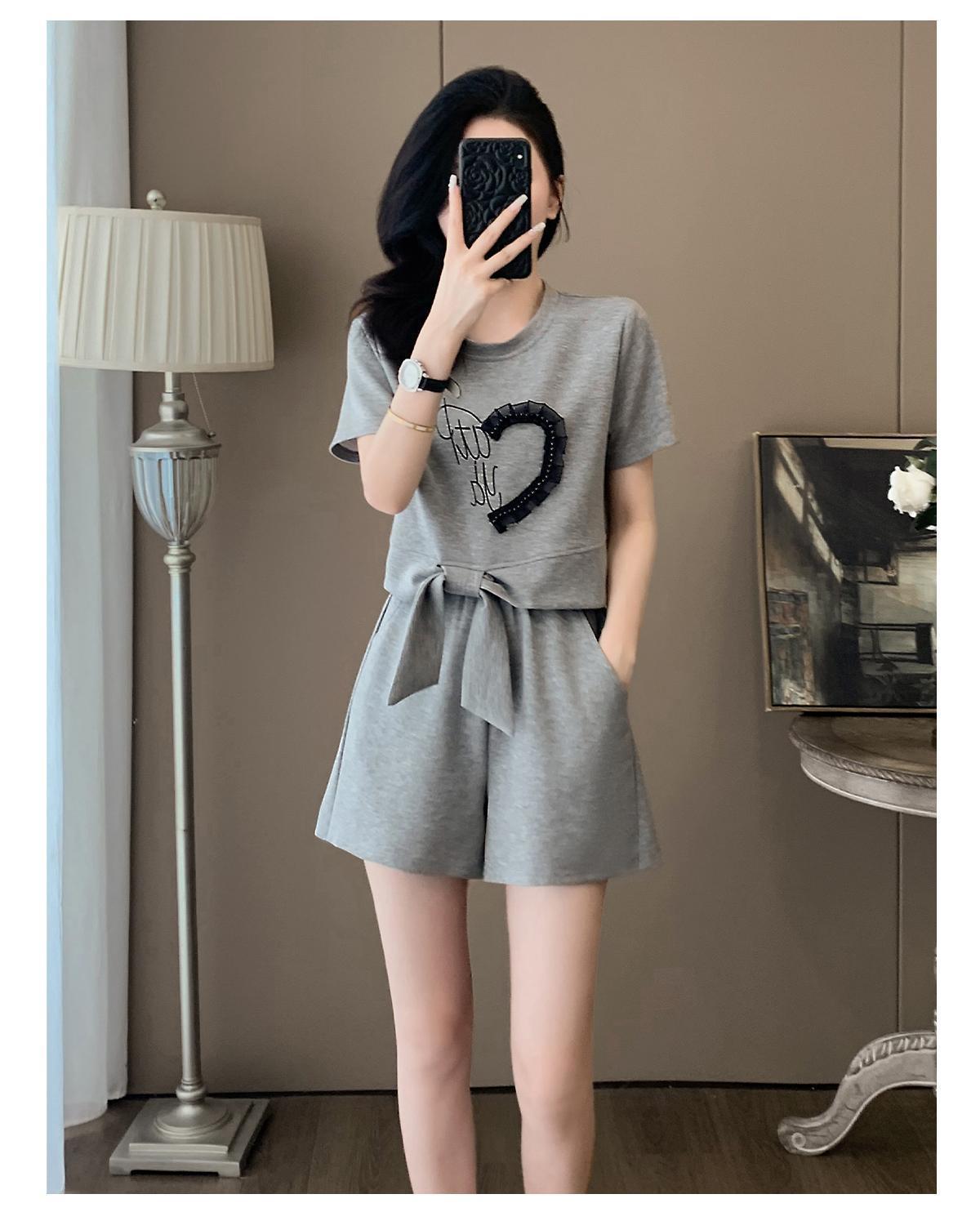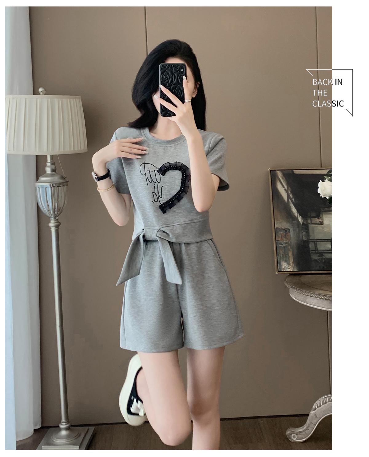 여성을위한 유럽 패션 스포츠 정장 여름 2025 새로운 느슨한 캐주얼 연령 감소 반팔 반바지 투피스 세트 # 916스토어 가기