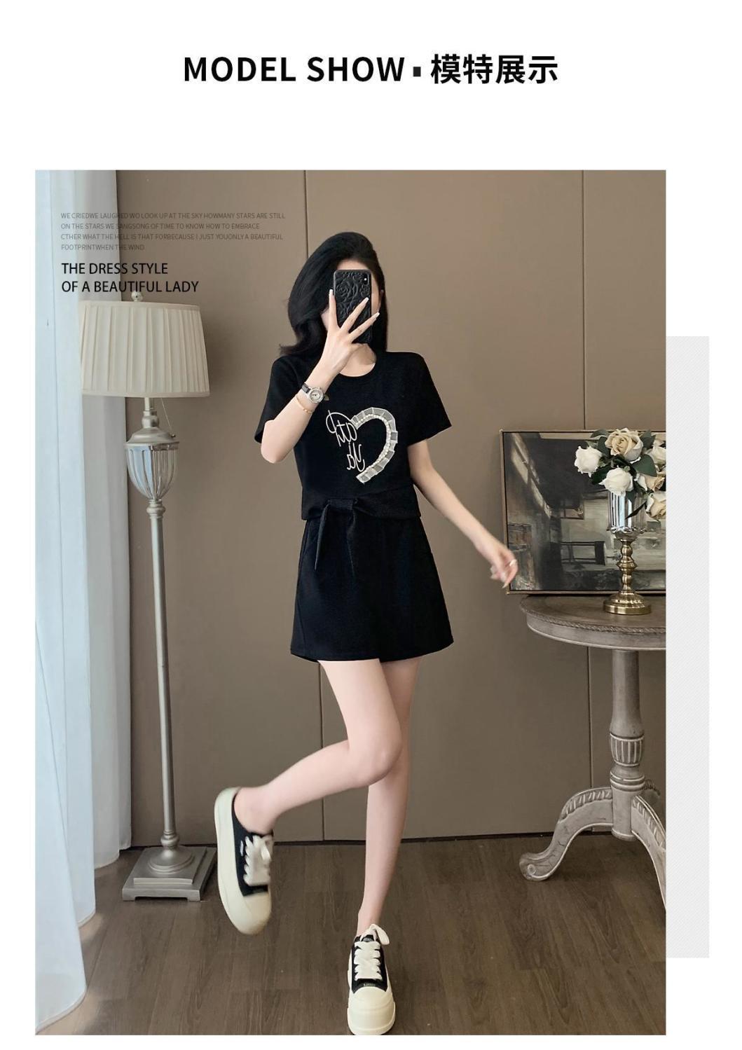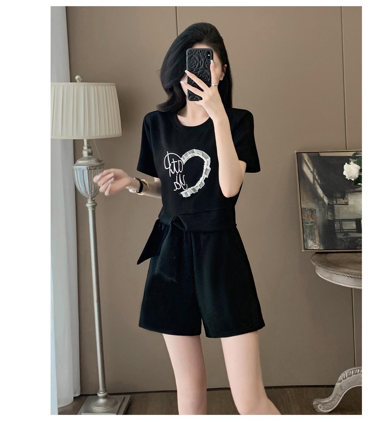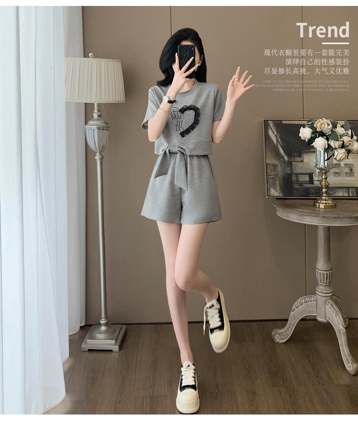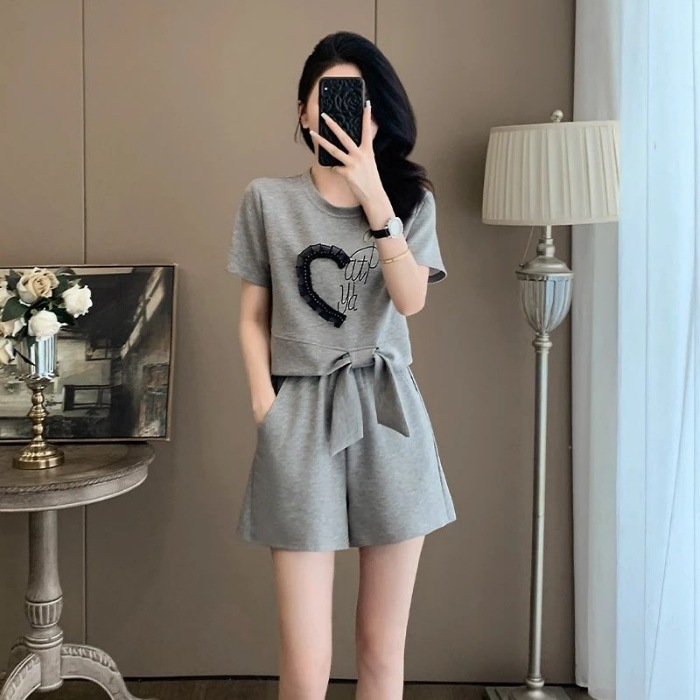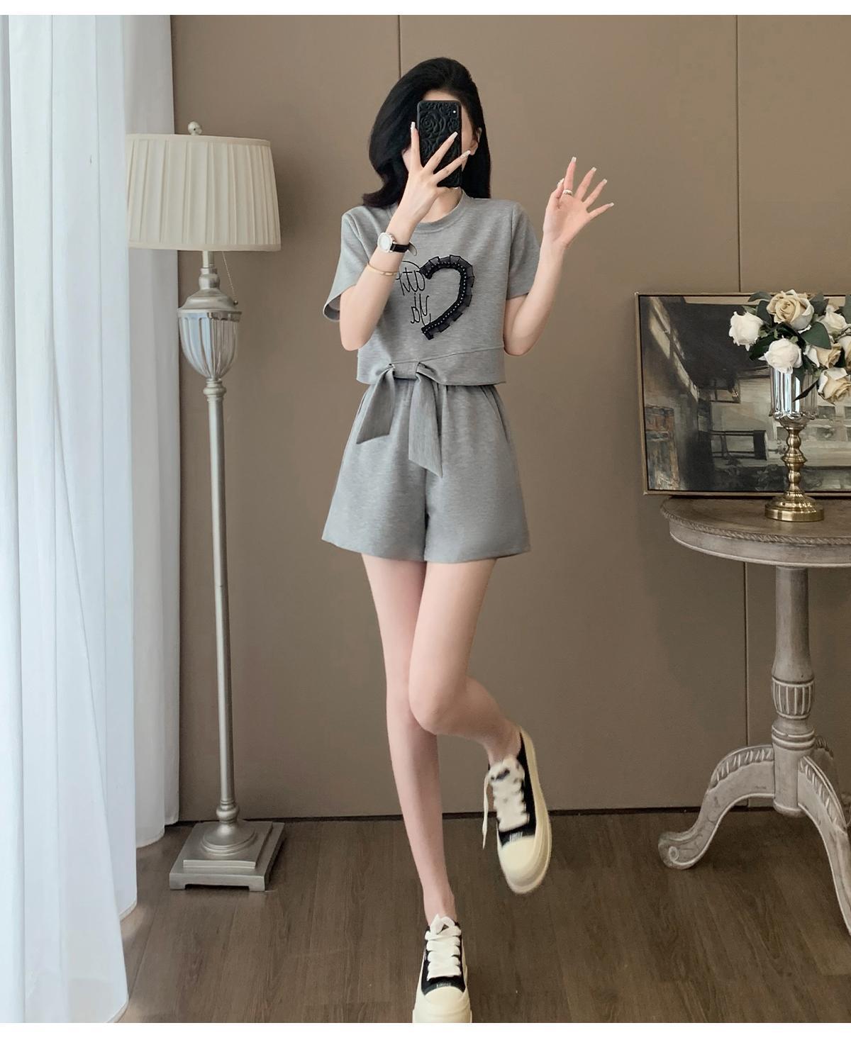 여성을위한 유럽 패션 스포츠 정장 여름 2025 새로운 느슨한 캐주얼 연령 감소 반팔 반바지 투피스 세트 # 916스토어 가기