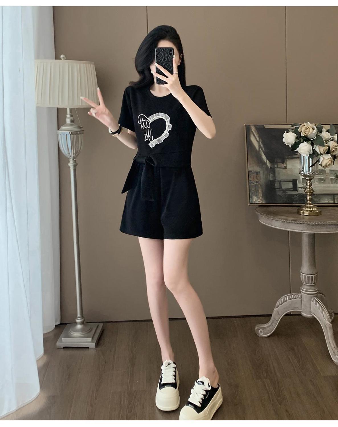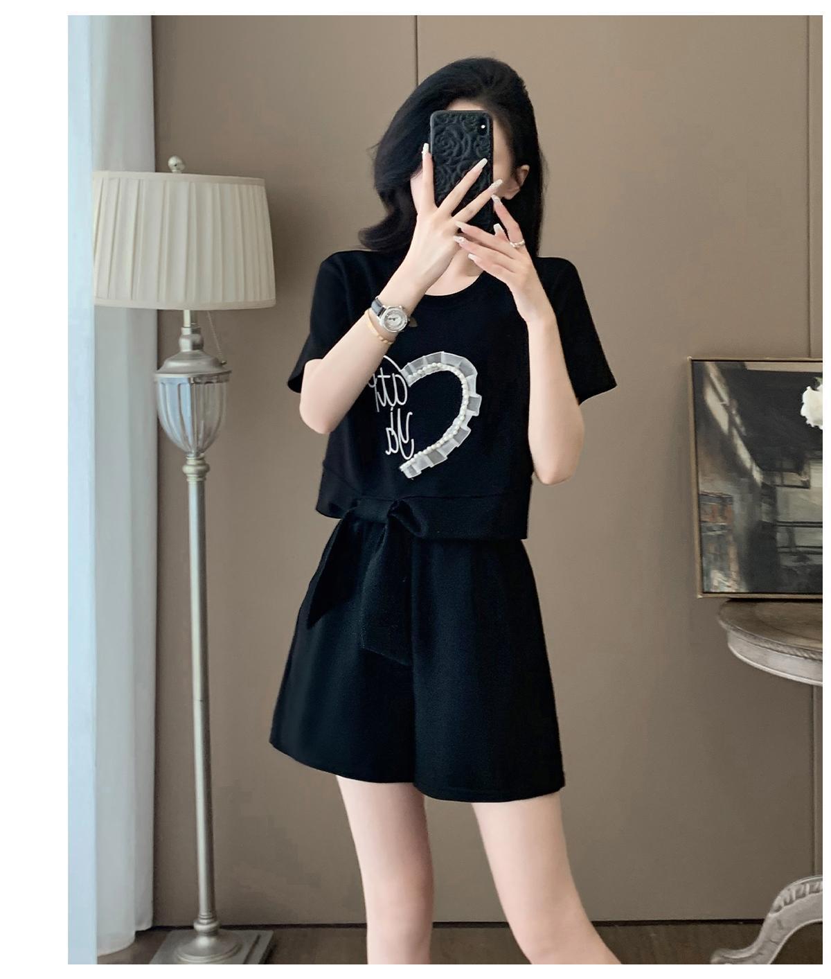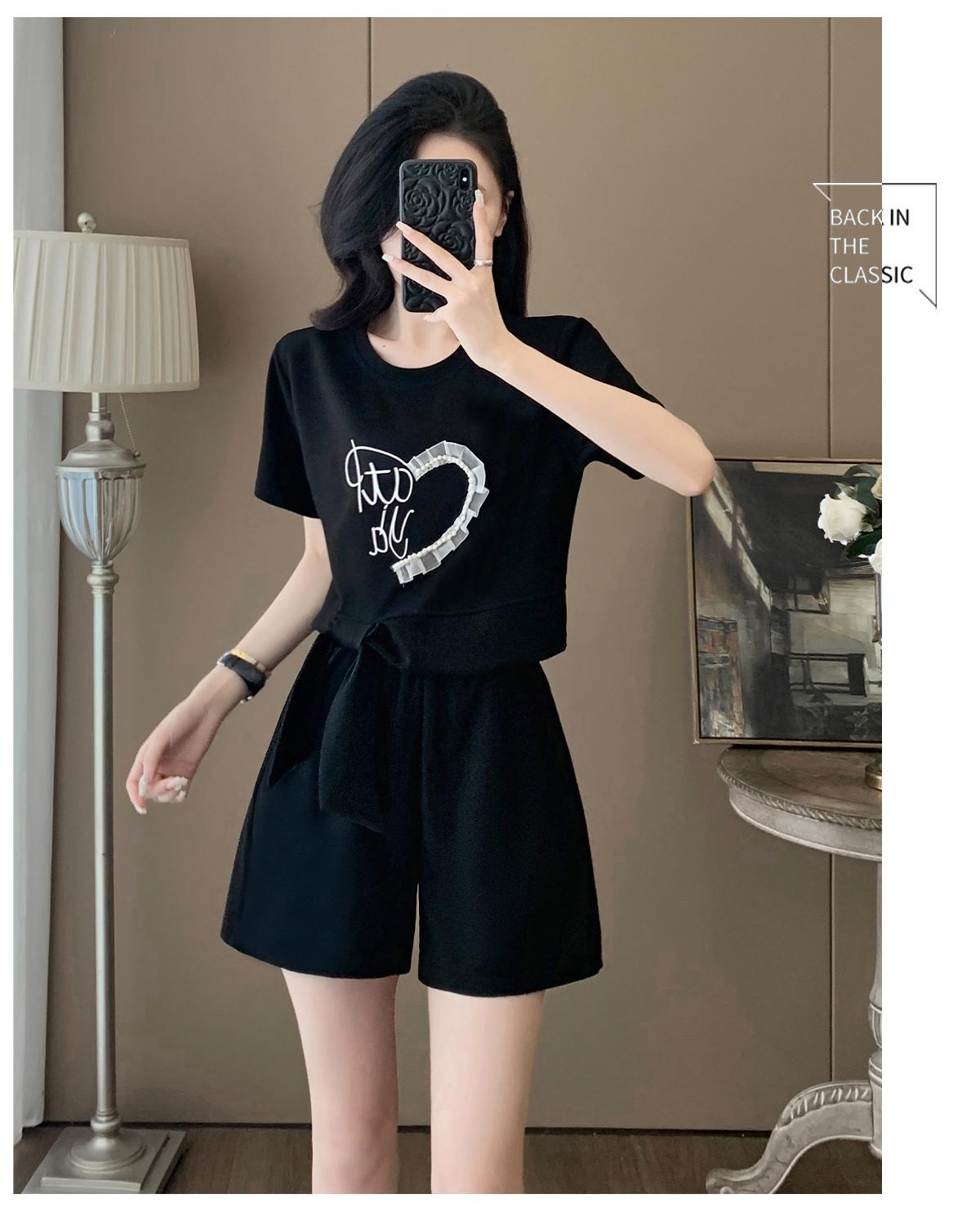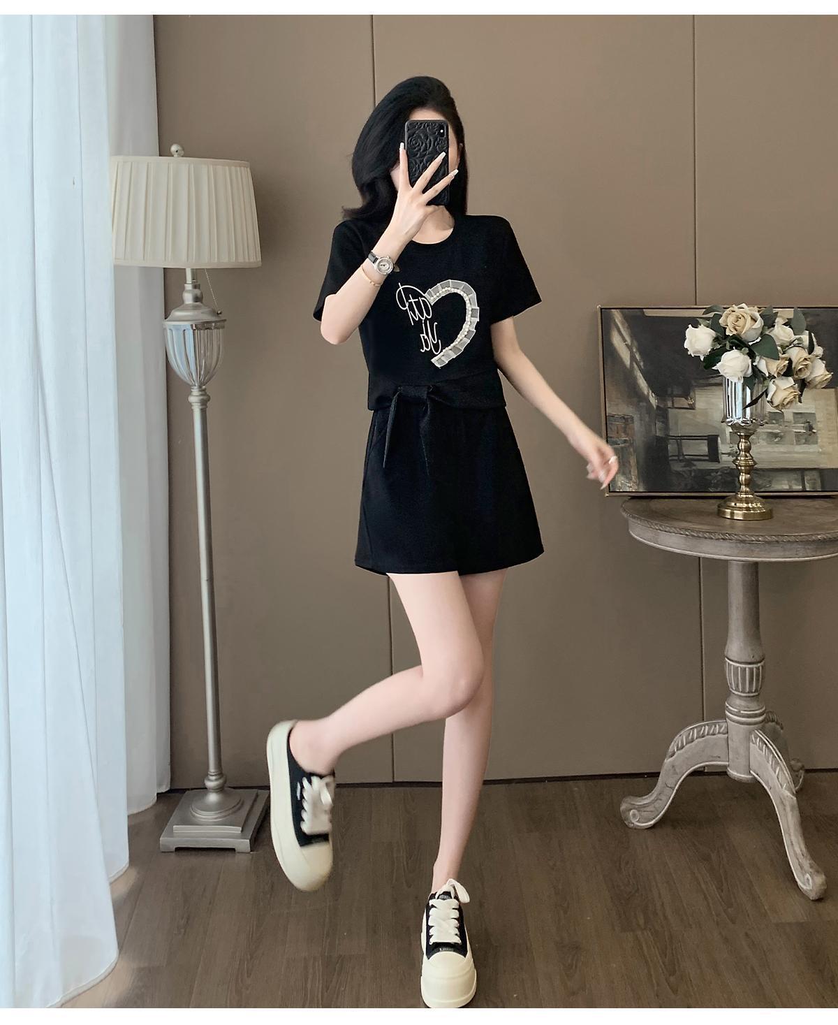 여성을위한 유럽 패션 스포츠 정장 여름 2025 새로운 느슨한 캐주얼 연령 감소 반팔 반바지 투피스 세트 # 916스토어 가기