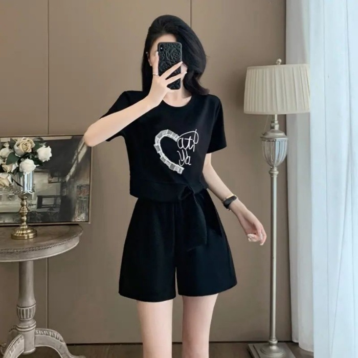 여성을위한 유럽 패션 스포츠 정장 여름 2025 새로운 느슨한 캐주얼 연령 감소 반팔 반바지 투피스 세트 # 916