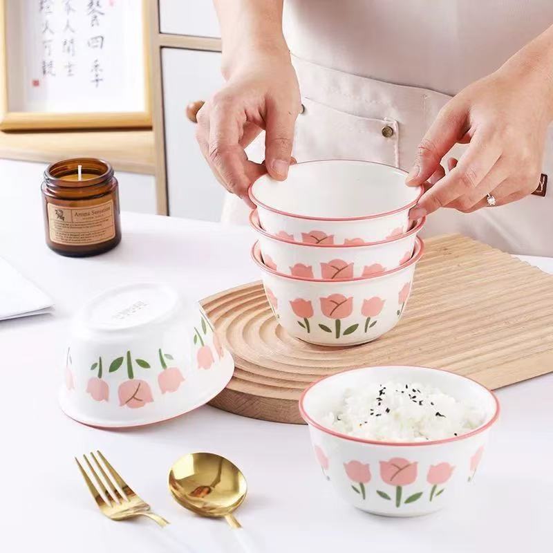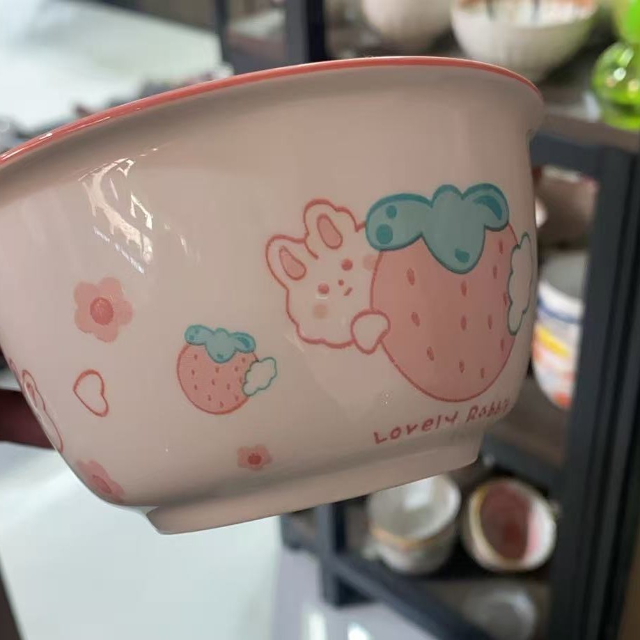 인터넷 연예인 도자기 그릇, 가정용 도자기 식기, 유약 도자기 작은 신선한 그릇, 밥 그릇, 국수 그릇, 연인 그릇, 둥근 그릇
