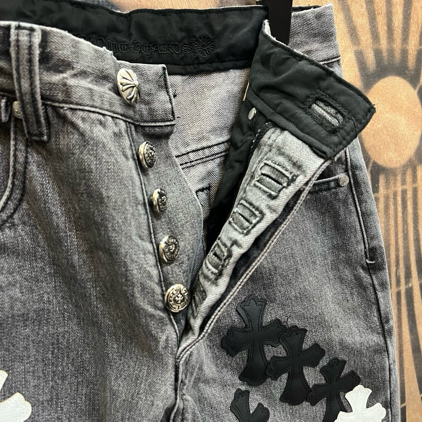 최고급 CH 크로 레미케이스 크로스 가죽 패치梵文 프린트 스트레이트 워싱 데님 팬츠 남녀공용 트렌디 스트레이트스토어 가기