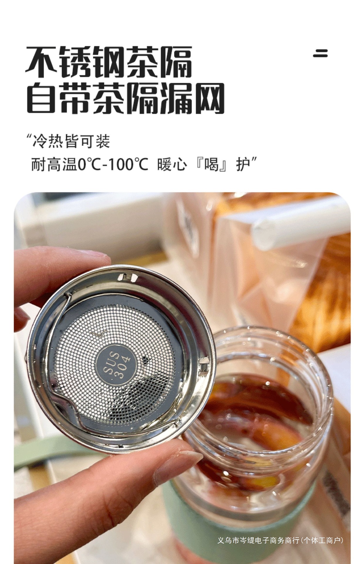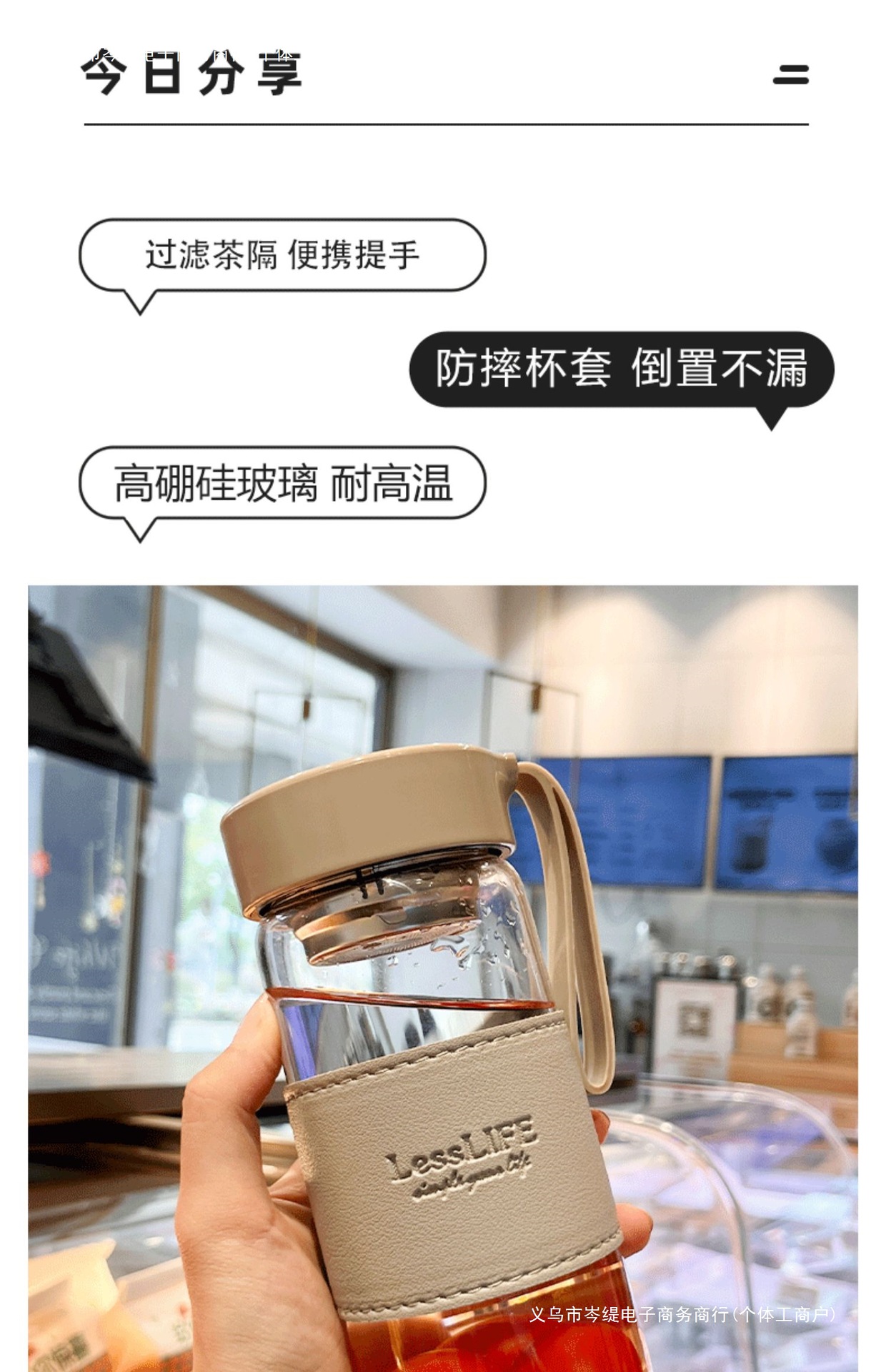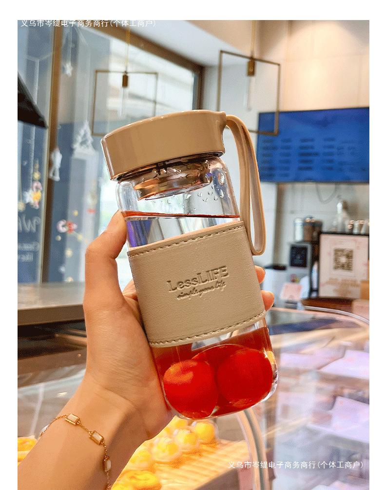 고급스러운 유리 컵, 고붕규산 내열성, 차 분리 컵, 남성용 신작 인터넷 연예인 단층 물컵, 여성용 여름스토어 가기