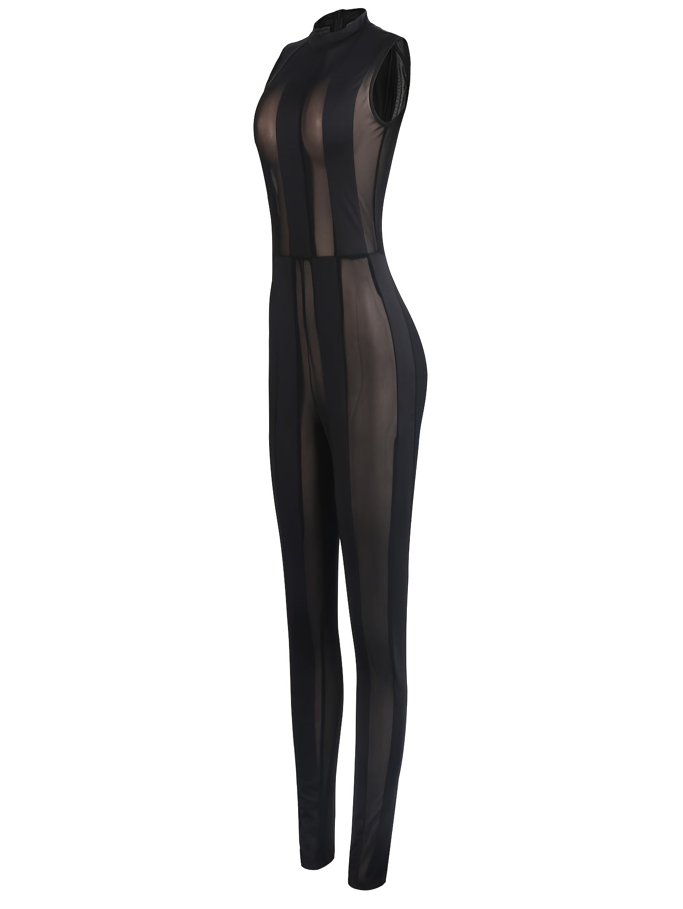 점프수트 원피스 의상 메쉬 시어 바디콘 슬리브 크로스보더
