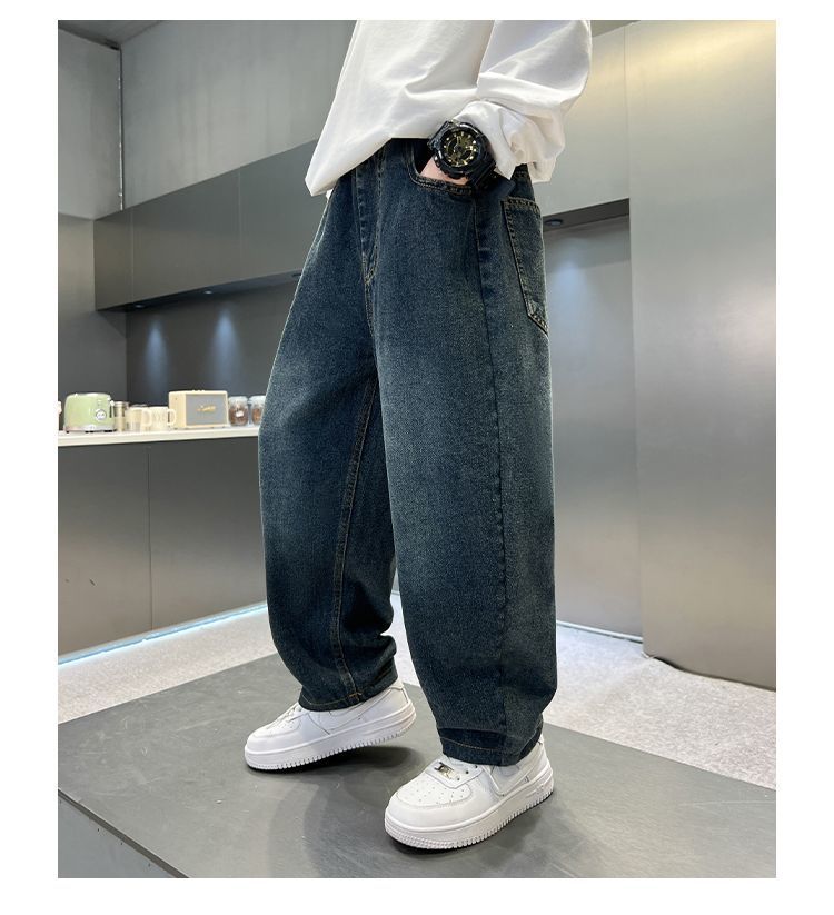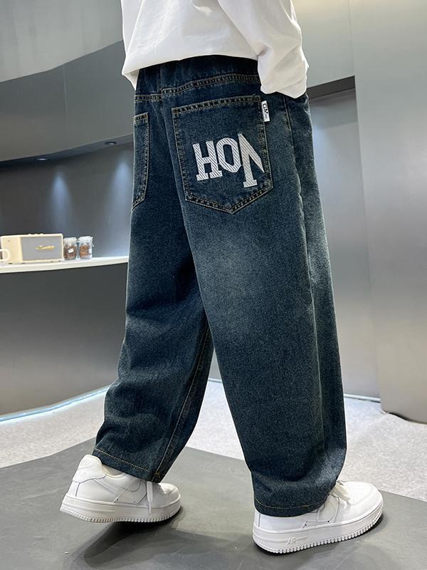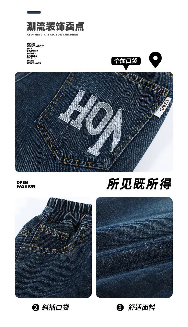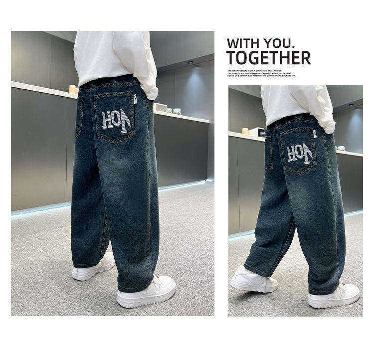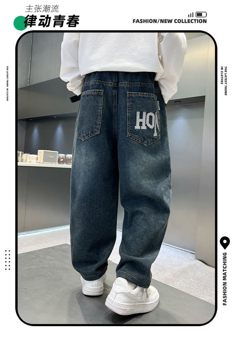 남아용 바지 봄 데님 팬츠 아동 가을 캐주얼 팬츠 2025 트렌디한 큰아이 한국 스타일 긴바지 레터 프린트