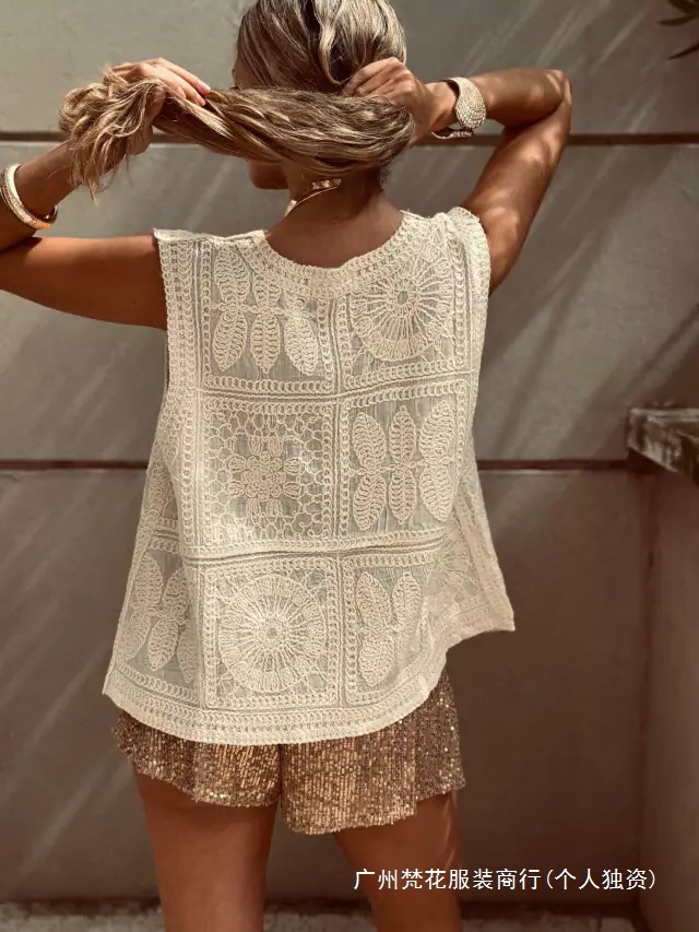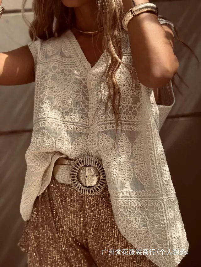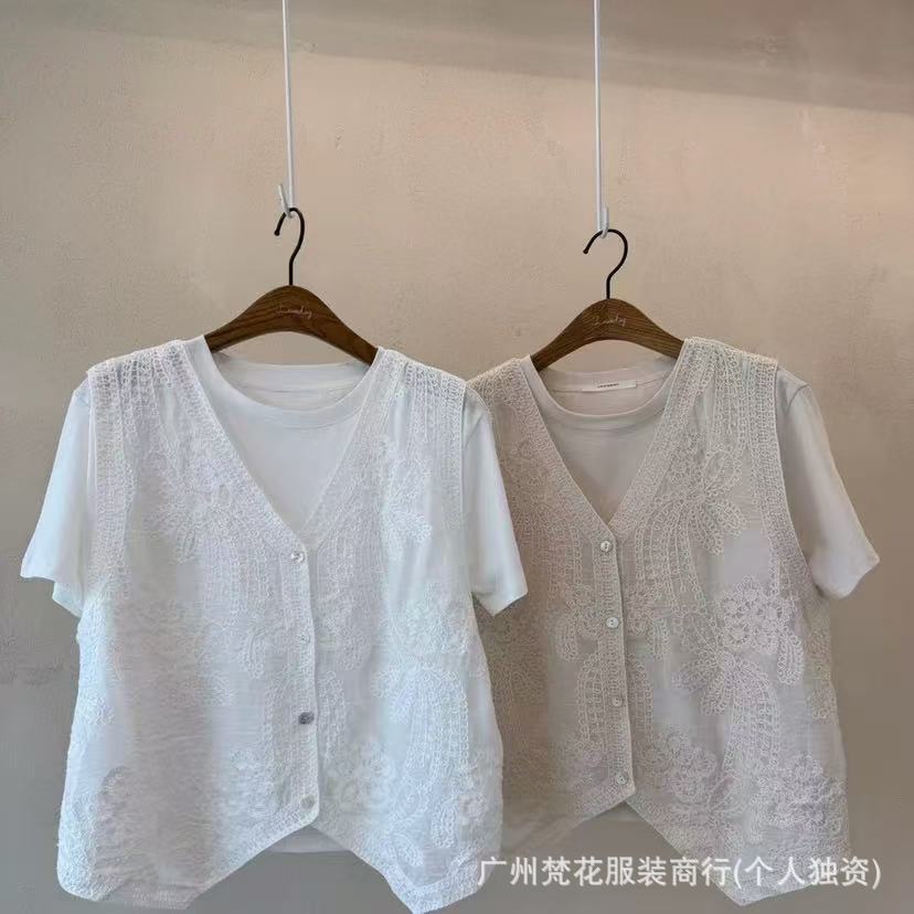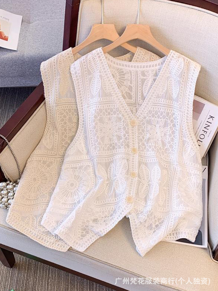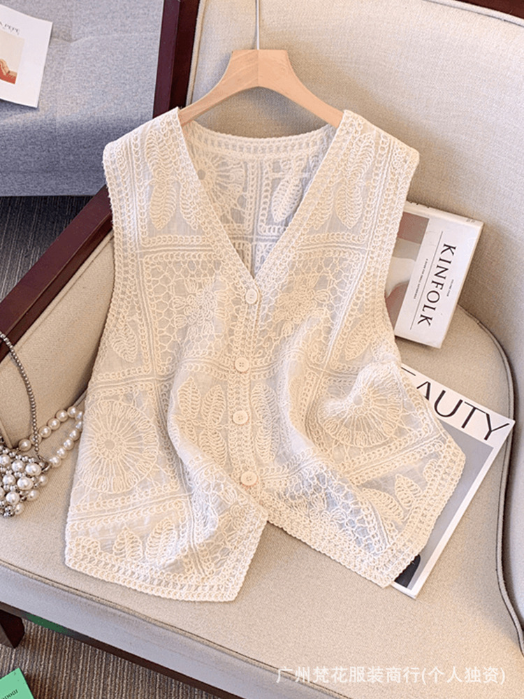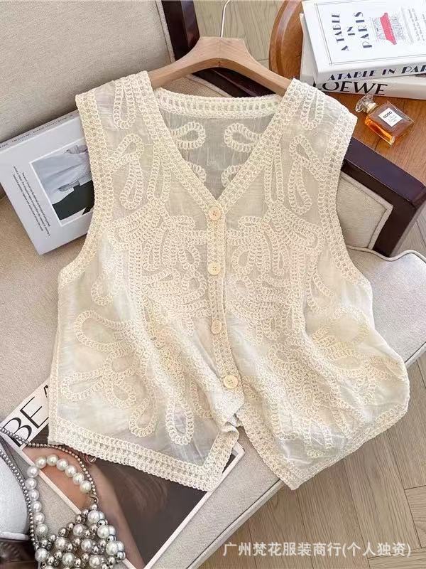 여성을위한 국경 간 문학적이고 예술적 인 슬리밍 수 놓은 레이스 조끼 새로운 캐주얼 스타일 블라우스 기질 탑 살구 코튼스토어 가기