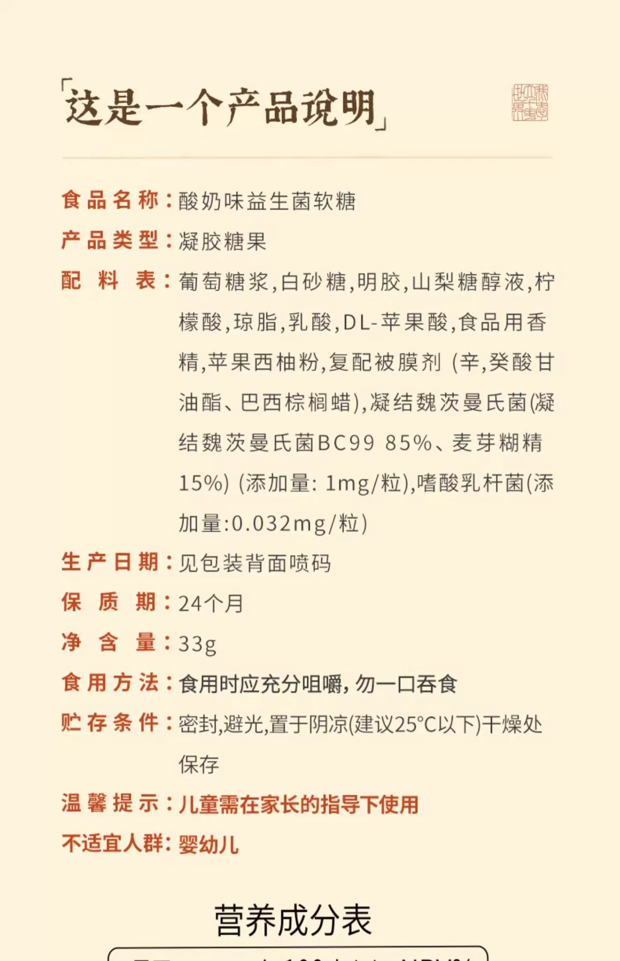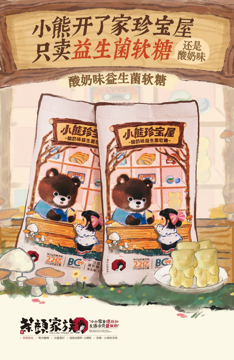 茶颜悦色酸奶味益生菌软糖小熊软糖酸甜Q弹橡皮糖休闲零食33g/袋