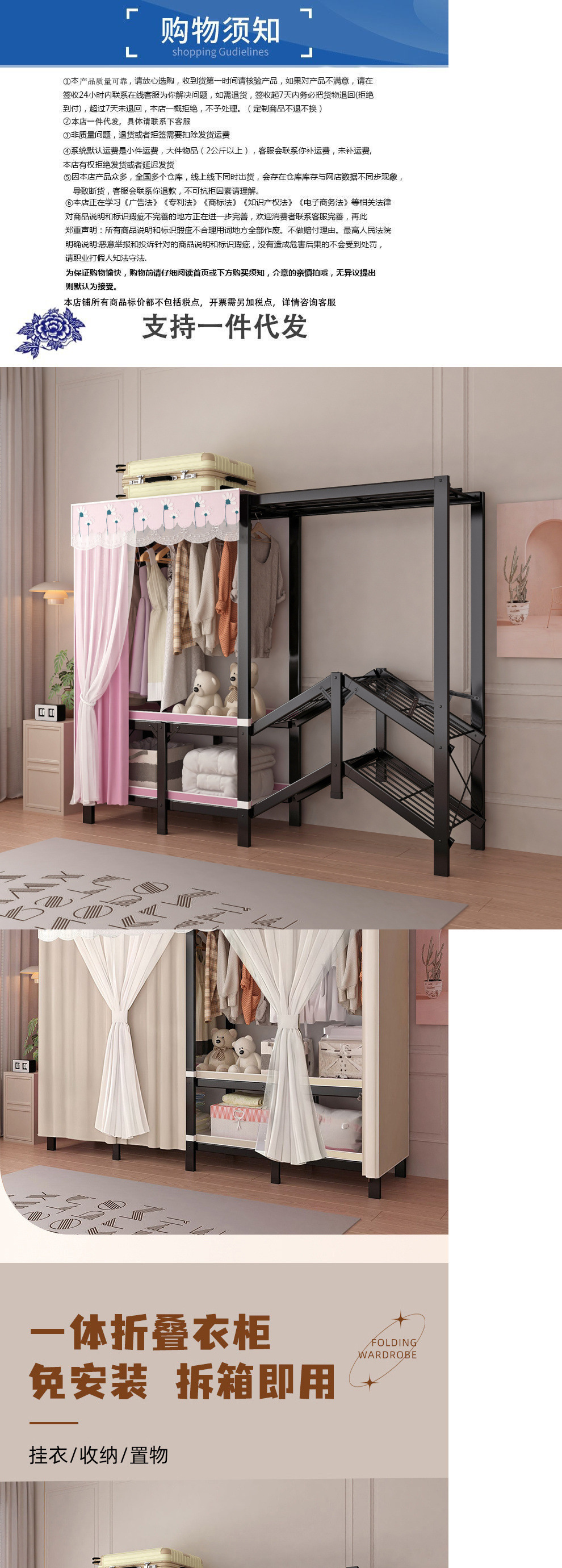 접이식 설치가 필요 없는 옷, 전체 강철 프레임, 두꺼운 강철 파이프, 두꺼운 강화 지퍼, 완전 밀폐형 방진 및 곰팡이 방지 침실스토어 가기