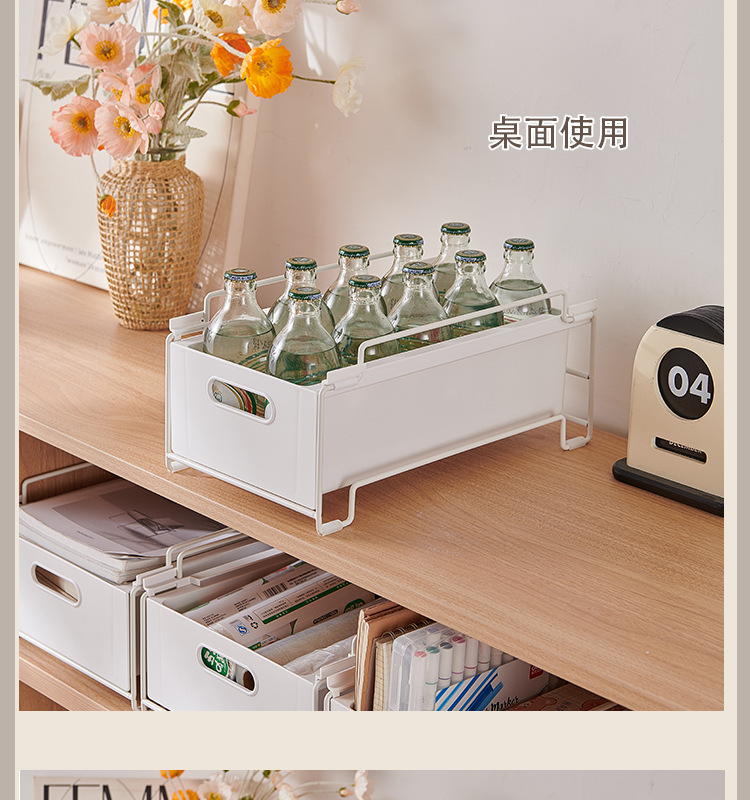 하라다 미치 싱크대 아래 수납선반, 풀아웃 주방 캐비닛 수납함, 풀아웃 바구니, 중첩 가능한 잡화 정리선반