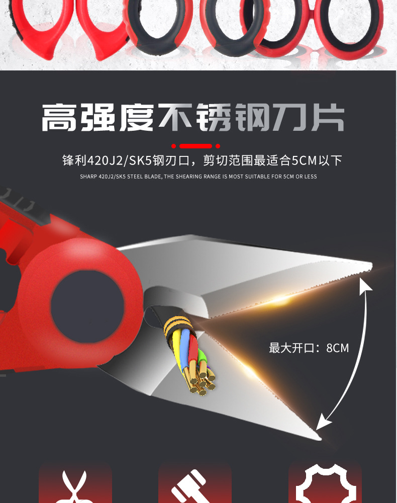 스테인레스 스틸 산업용 가위, 전기공구, 전선 가위, 절연 가위, 케이블 가위, 강선 다용도 가위, 철사 가위