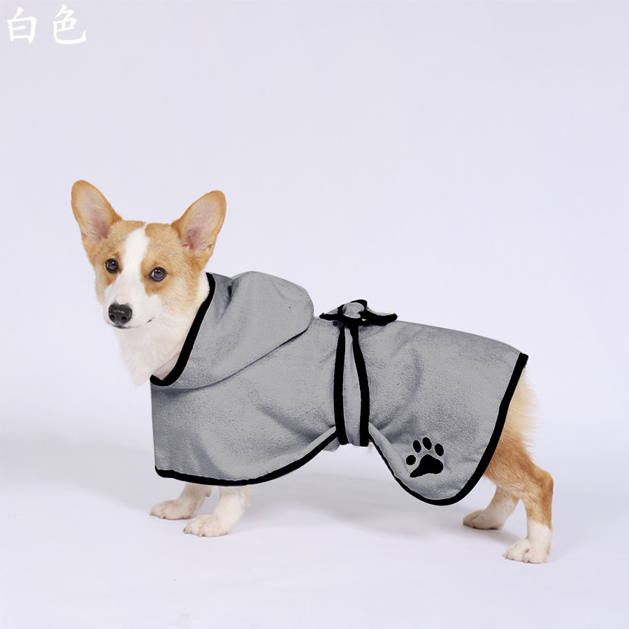 • S [두꺼운 400g 소재, 4-10kg세 이하 반려동물에게 적합] 후드 목욕가운 [그레이]
